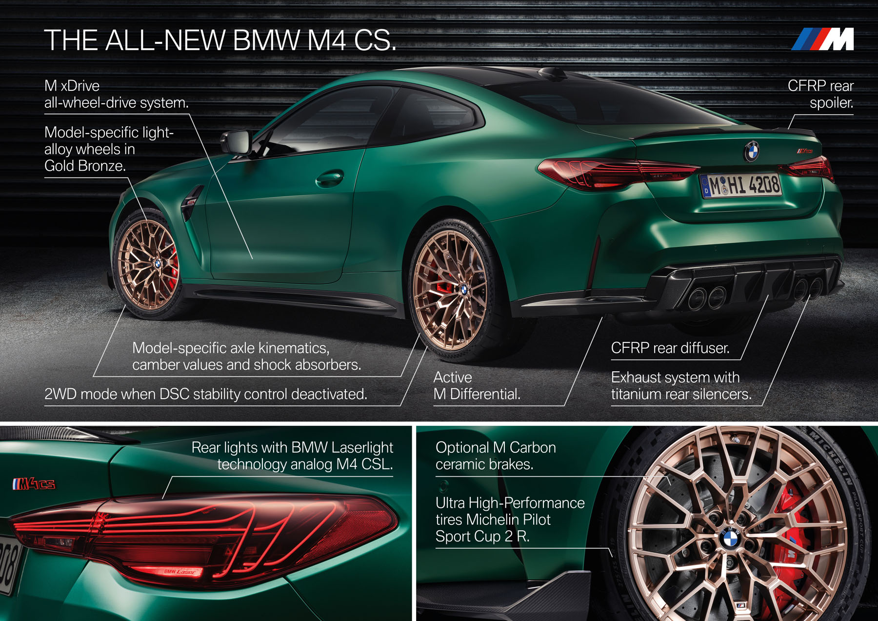 Η CS προσφέρει το κάτι παραπάνω από την στάνταρ M4 Competition και το κάτι λιγότερο από την CSL των 1.000 μονάδων, με έμφαση στην αυξημένη ισχύ, το μειωμένο βάρος και τις βελτιωμένες επιδόσεις στην πίστα.