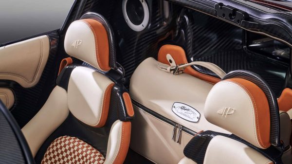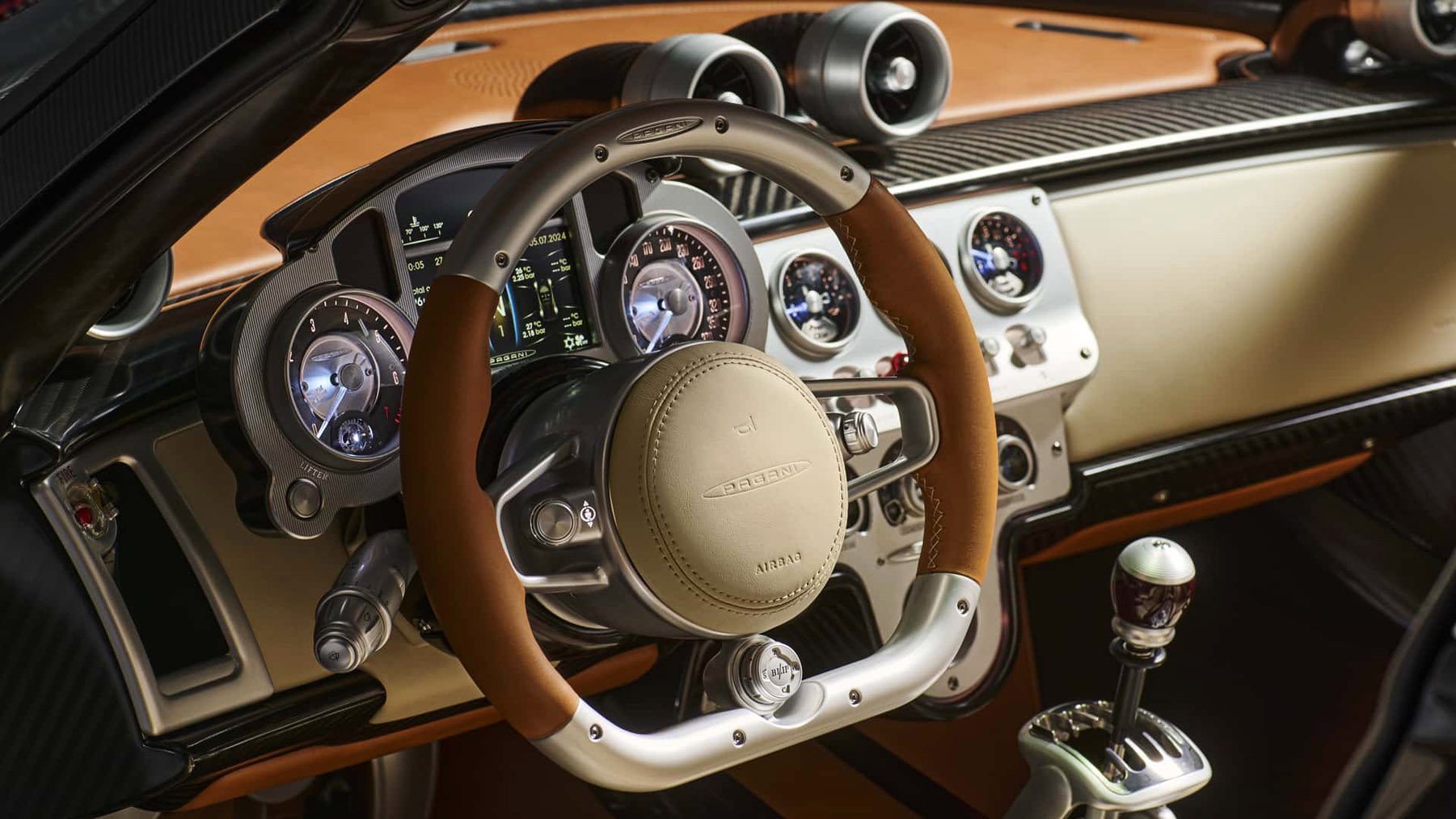 Στο εσωτερικό, οι σχεδιαστές της Pagani πρόσθεσαν νέα πατάκια με υφή που θυμίζει εξωτερικό σκάφος, ενώ το κλειδί έχει επίσης ανασχεδιαστεί, υιοθετώντας το σιλουέτα του ανοικτού αυτοκινήτου.