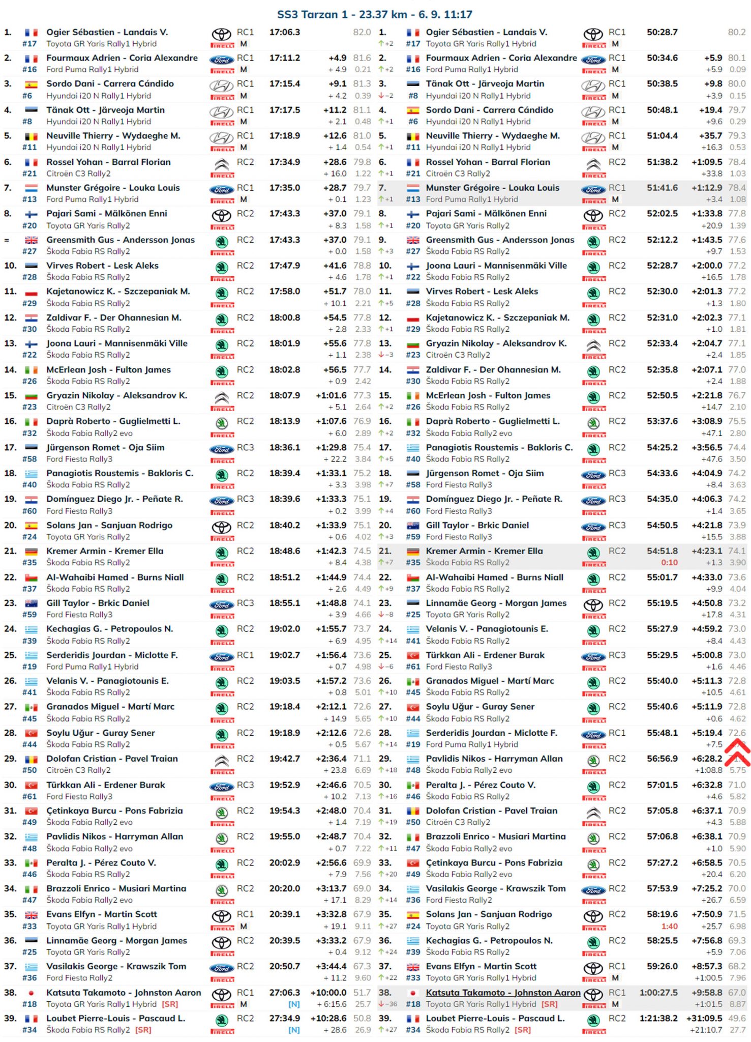 Ο Adrien Fourmaux ανέβηκε στη δεύτερη θέση γενικής κατάταξης μετά τον δεύτερο ταχύτερο χρόνο στην ειδική διαδρομή Tarzan, προσπερνώντας τον Ott Tänak, ο οποίος είχε πάρει για λίγο το προβάδισμα μετά την ΕΔ2. Η απόδοση του Fourmaux ήταν εντυπωσιακή, καθώς το Ford Puma του M-Sport αντιμετώπιζε πρόβλημα με τη μονάδα υβριδικής υποβοήθησης σε μεγάλο μέρος του πρωινού.