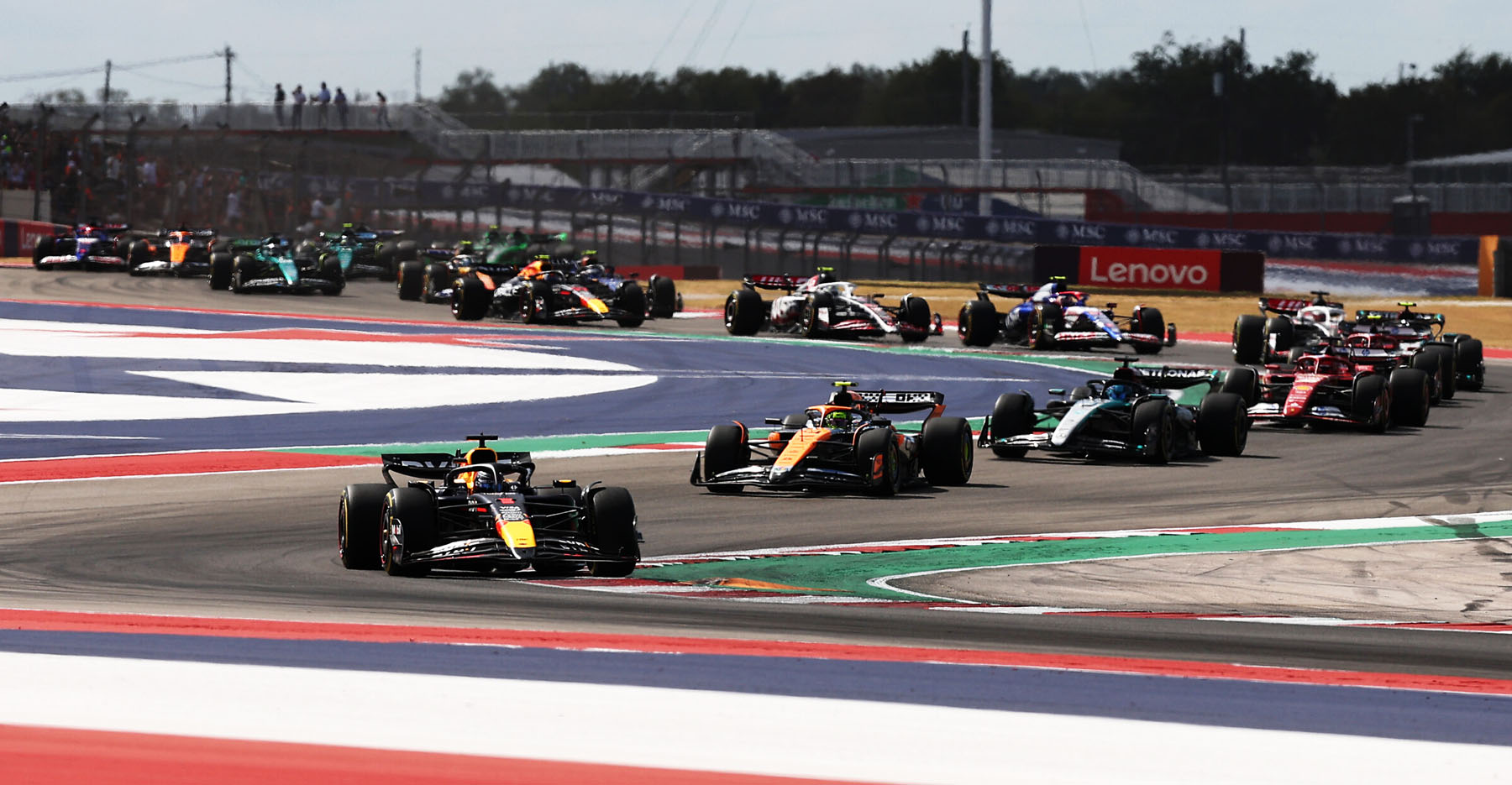 Ο Norris είχε πραγματοποιήσει εξαιρετική εκκίνηση, προσπερνώντας τον Charles Leclerc στη στροφή 1 και καταλαμβάνοντας την εσωτερική γραμμή στην επόμενη στροφή για να περάσει και τον George Russell, ανεβαίνοντας στη δεύτερη θέση. Στη συνέχεια, διατήρησε το προβάδισμα του DRS πίσω από τον Verstappen, πλησιάζοντας αρκετά στην ευθεία, χωρίς ωστόσο να έχει τον ρυθμό για να απειλήσει τον πρωταθλητή.