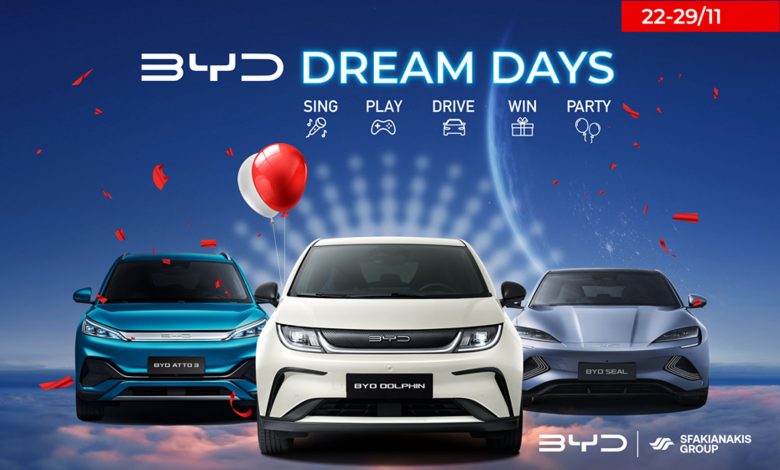 Η BYD προσκαλεί το κοινό σε μια εβδομάδα αφιερωμένη στην ηλεκτροκίνηση, τους BYD Dream Days, από τις 22 έως τις 29 Νοεμβρίου.