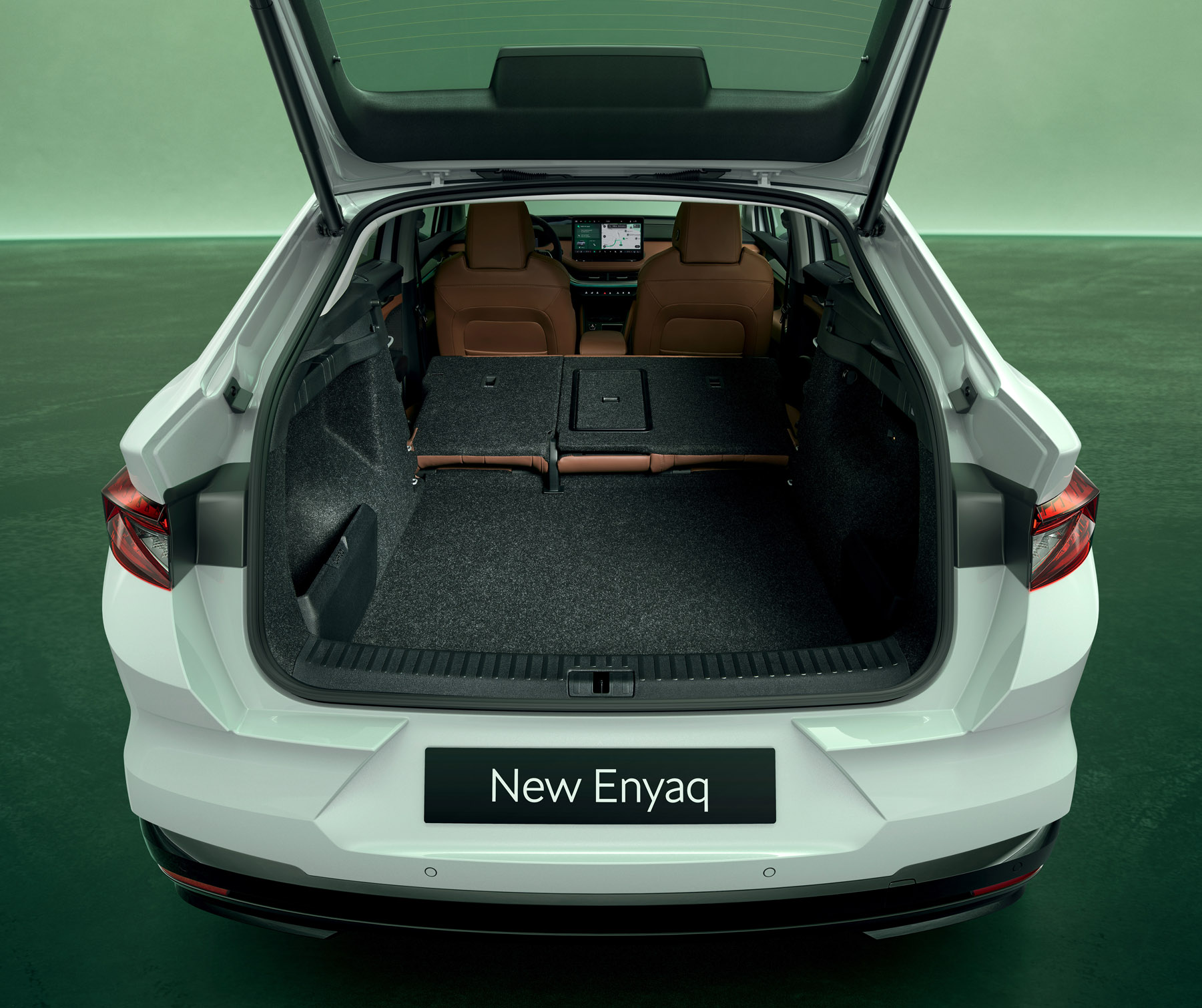 Η Skoda έχει βελτιώσει την ευκολία χρήσης του Enyaq με έξυπνες λεπτομέρειες, όπως QR code στο πορτμπαγκάζ για γρήγορη πρόσβαση σε οδηγίες χρήσης, ξύστρα πάγου με μετρητή βάθους πέλματος και USB-C θύρες ταχείας φόρτισης.