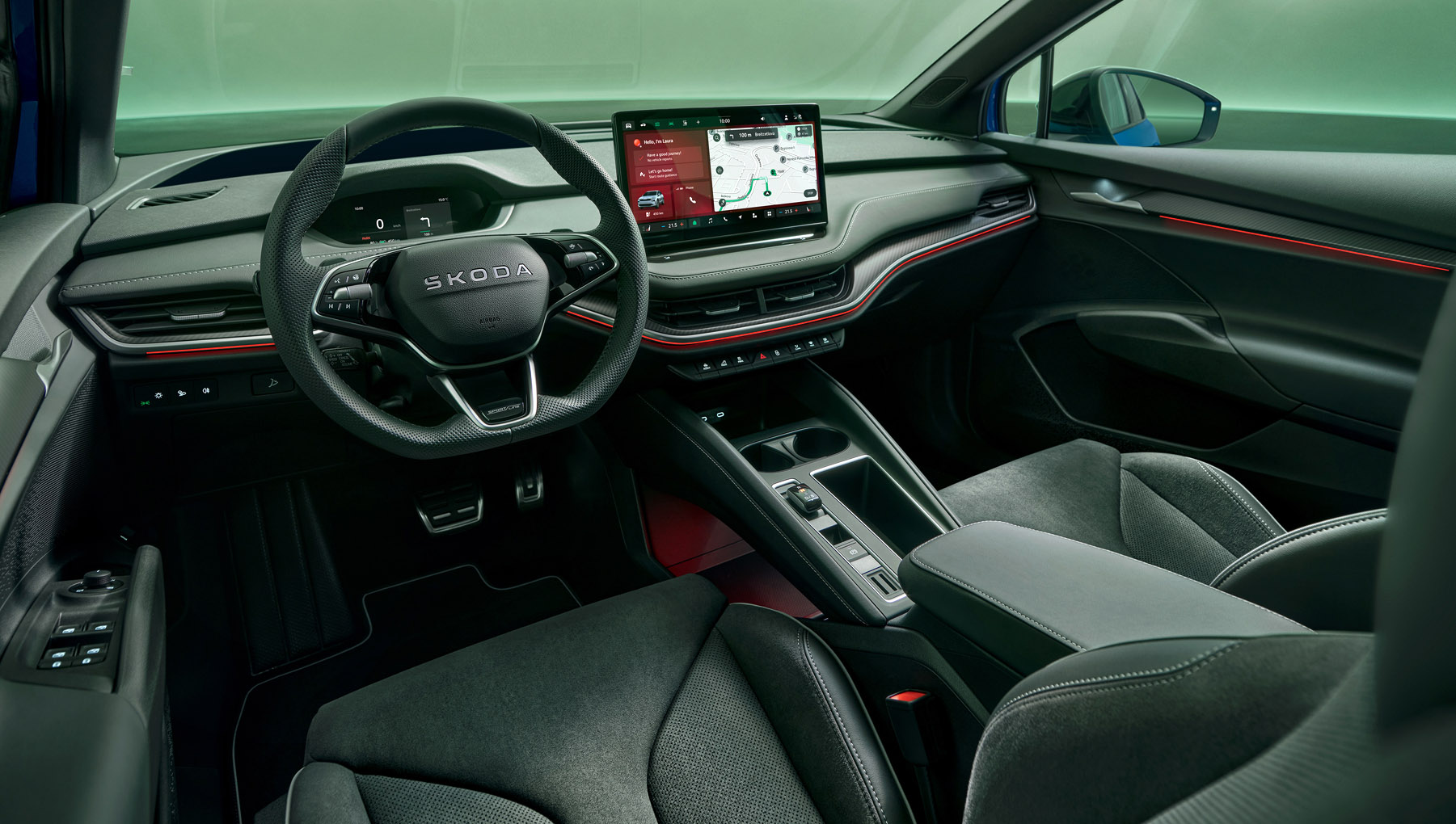 Στο εσωτερικό, το τιμόνι φέρει πλέον το νέο λογότυπο Škoda, ενώ ο 5 ιντσών ψηφιακός πίνακας οργάνων και η οθόνη 13 ιντσών για το infotainment ανήκουν στον βασικό εξοπλισμό. Επιπλέον, διατίθεται Head-Up Display επαυξημένης πραγματικότητας.