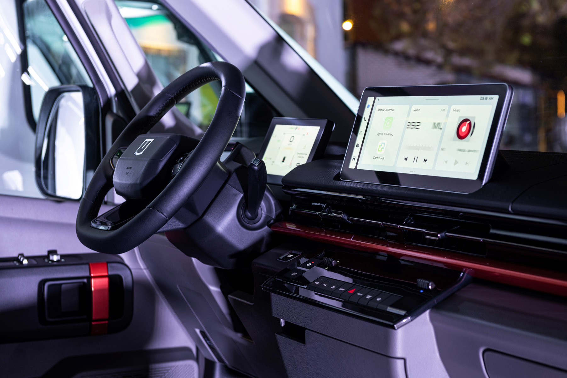 Η καμπίνα του Farizon SuperVan έχει σχεδιαστεί για να προσφέρει άνεση και εργονομία, ακόμα και στις πιο απαιτητικές συνθήκες εργασίας: