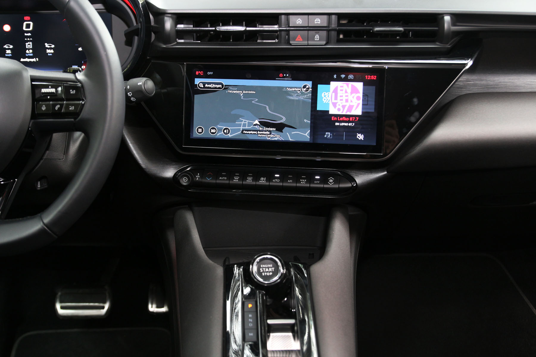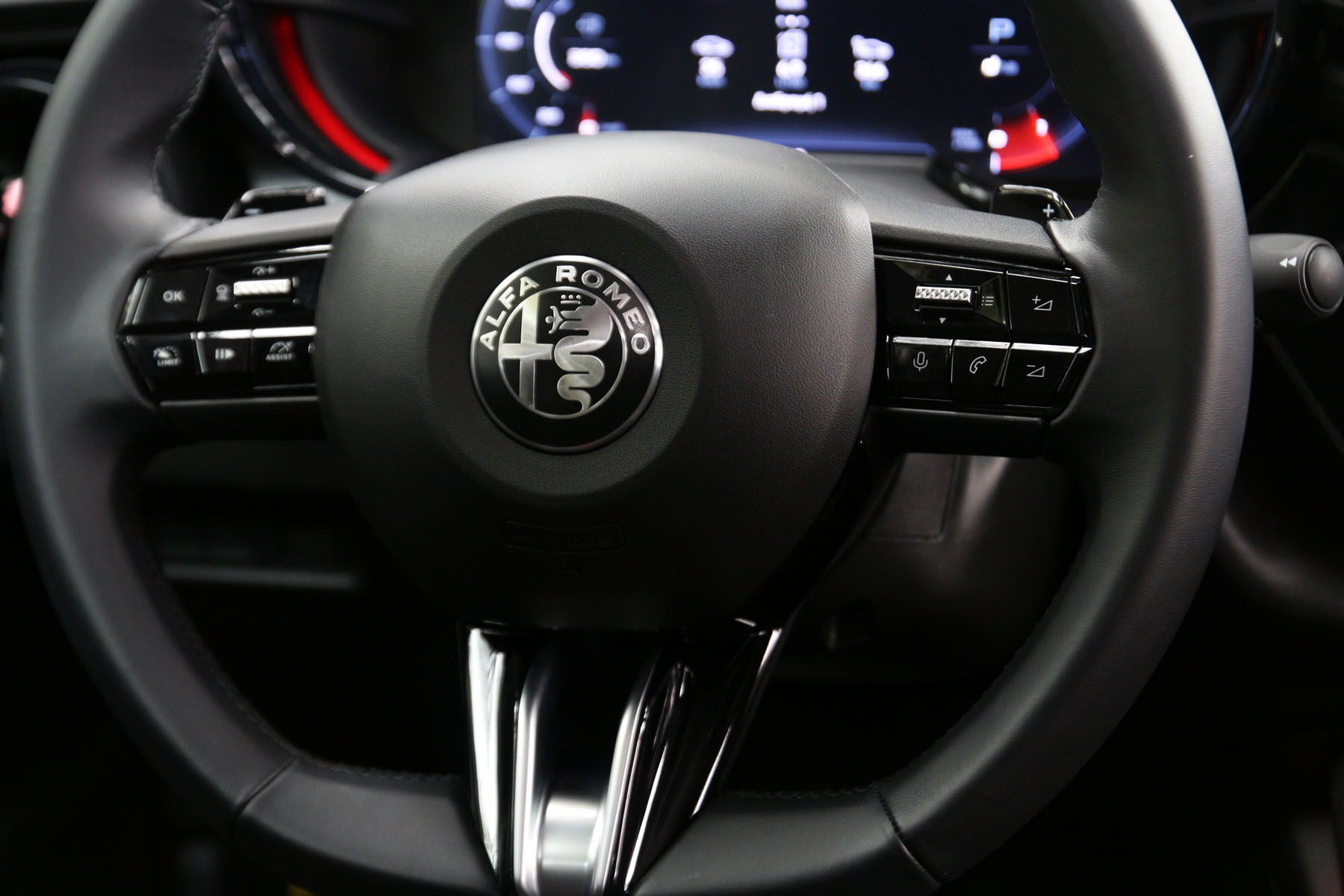 Αυτό που παρατηρείς είναι κάποια στοιχεία που λείπουν σε σχέση με τις μεγαλύτερες Alfa, όπως το start button στο τιμόνι ή ο επιλογέας, σημάδια της συγγένειας με τα Opel και τα Peugeot, ενώ και τα paddles πίσω από τιμόνι είναι πιο διακριτικά (ευτυχώς) σε σχέση με τα μεγάλα SUV των Ιταλών.
