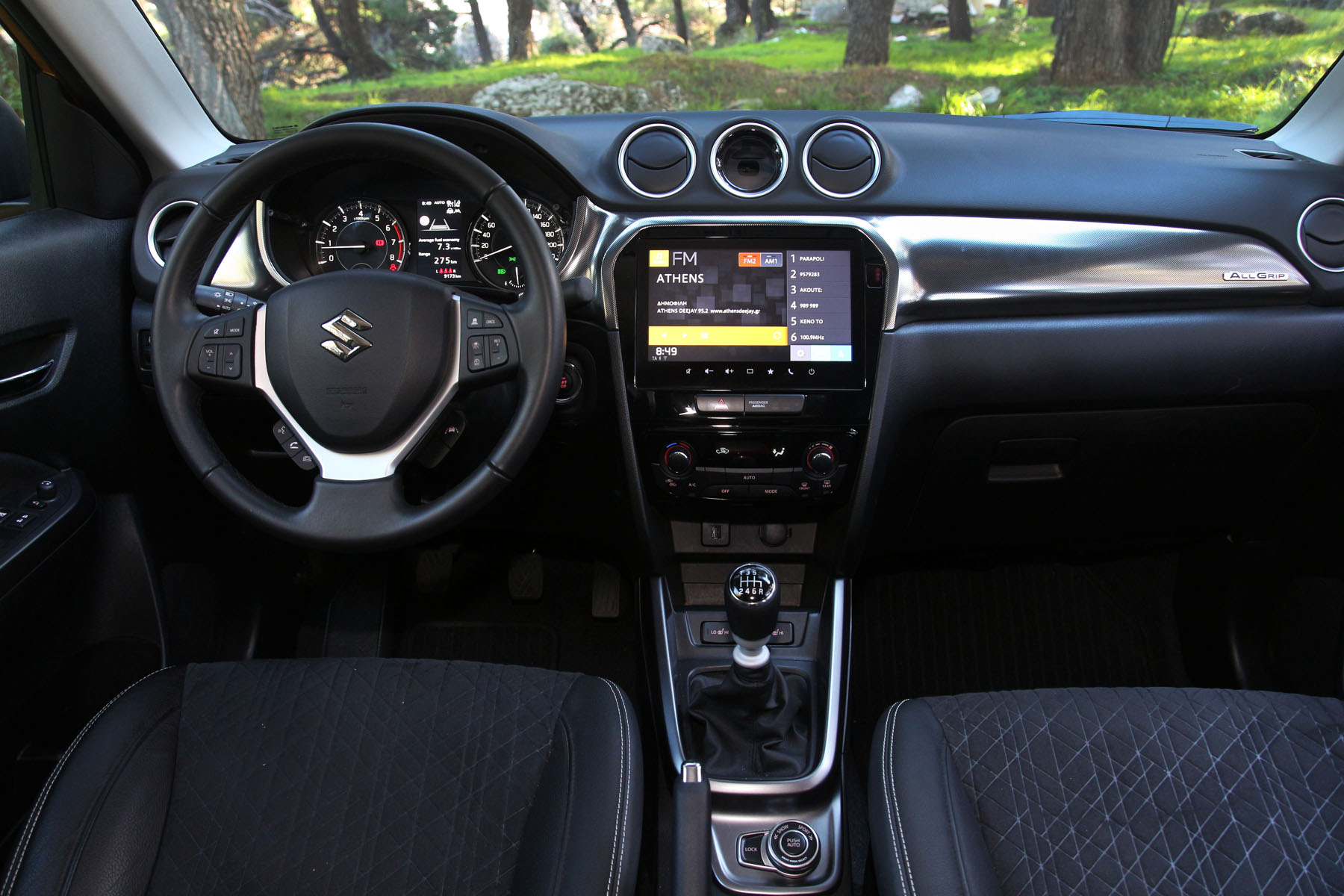Στη γενική του φιλοσοφία το Vitara είναι ένα SUV που εκπέμπει σοβαρότητα-αντοχή στο χρόνο και ευκολία στη χρήση. Αυτό δηλαδή που αντιλαμβάνεσαι μόλις μπεις και στο εσωτερικό του και περάσεις μερικά λεπτά πίσω από το τιμόνι του.