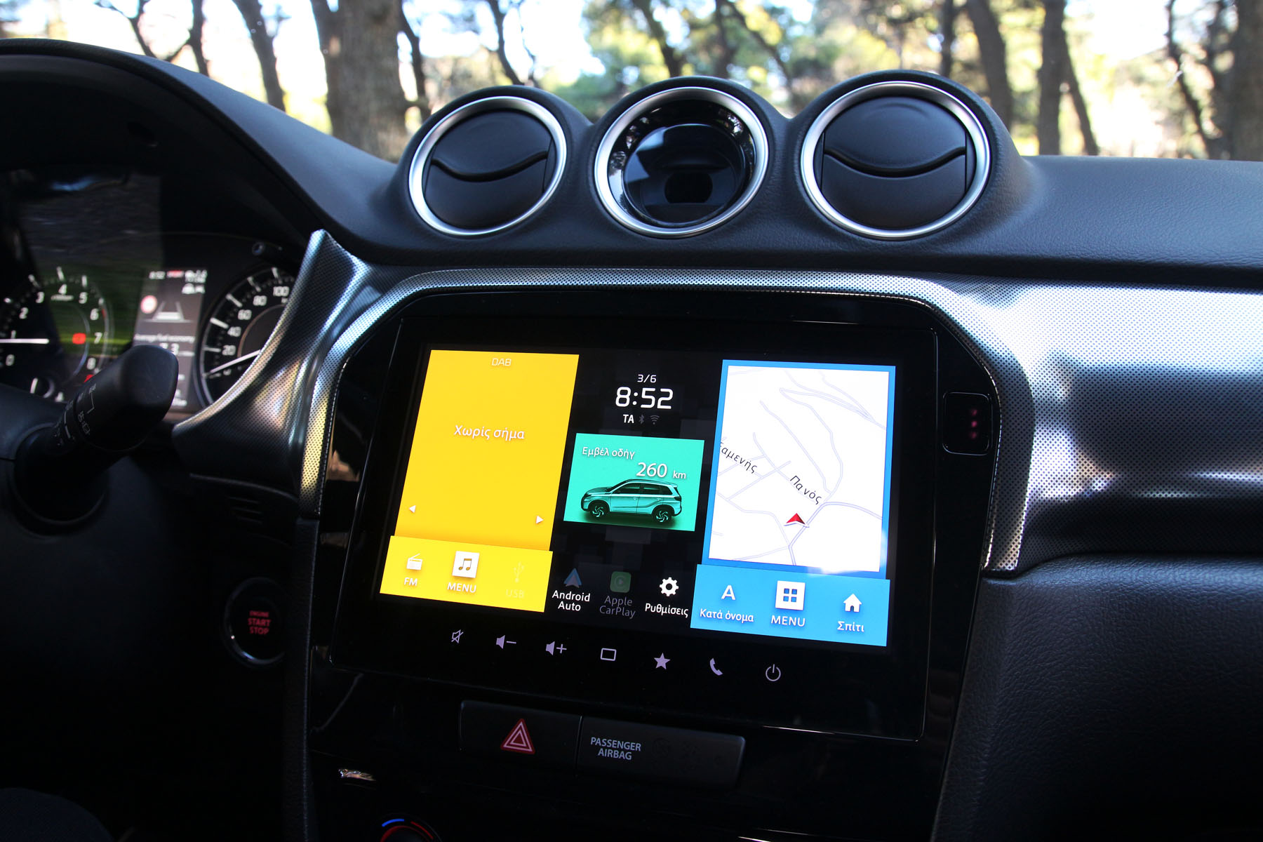 Για να μην ξεχνάμε τον ψηφιακό κόσμο και τον εκμοντερνισμό στον βαθμό που θέλει το κοινό της Suzuki και όχι με τον τρόπο που τρέχει η πλειοψηφία των νέων μοντέλων με τις πελώριες οθόνες αφής χωρίς ίχνος φυσικού πλήκτρου.