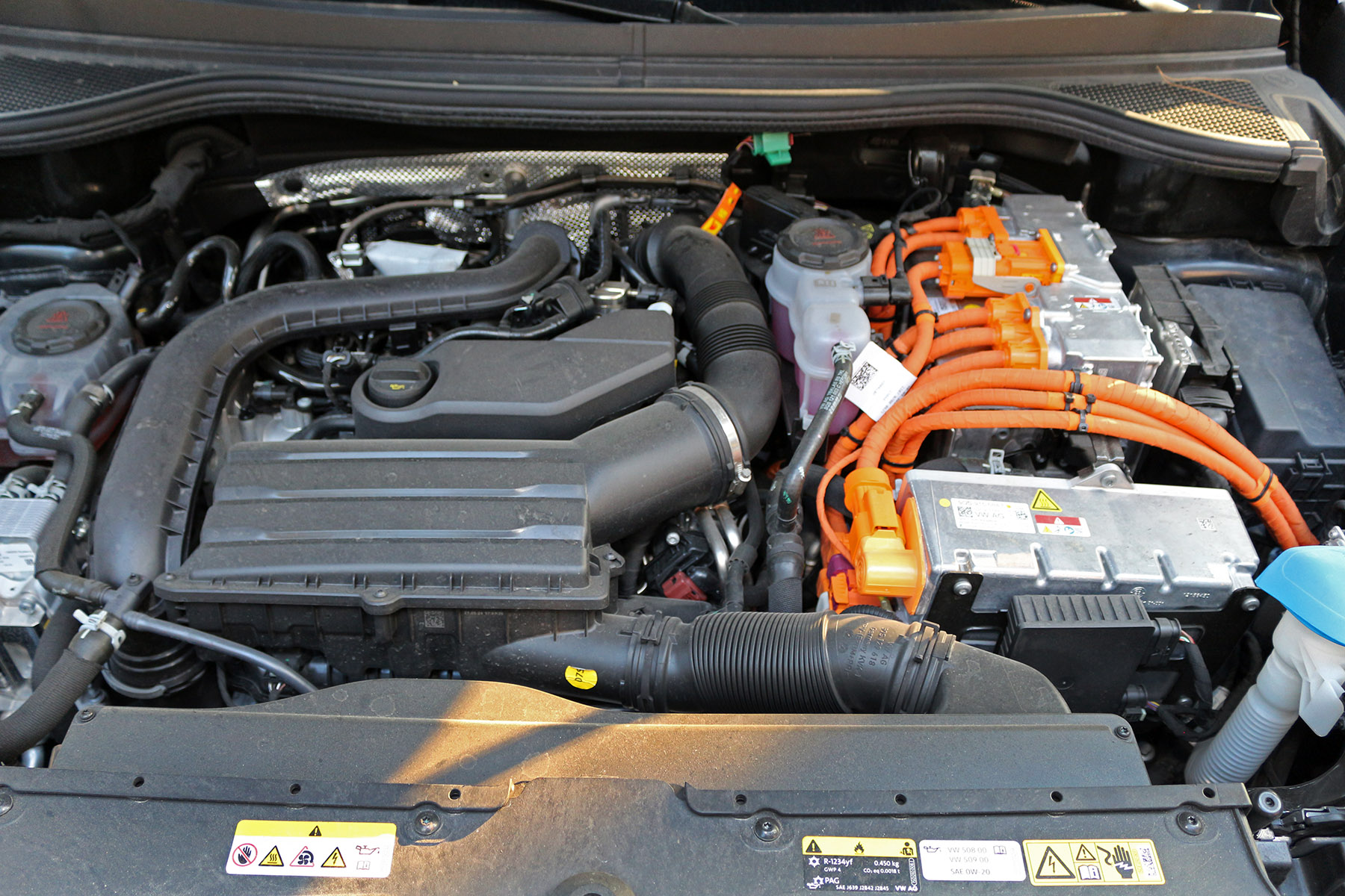 Κάτω από το καπό θα αντικρύσει κανείς ένα βενζινοκίνητο TSI σύνολο 1.5 λίτρων με 150 PS, το οποίο συνεπικουρείται από ένα ηλεκτρομοτέρ με 116 PS και 330 Nm.
