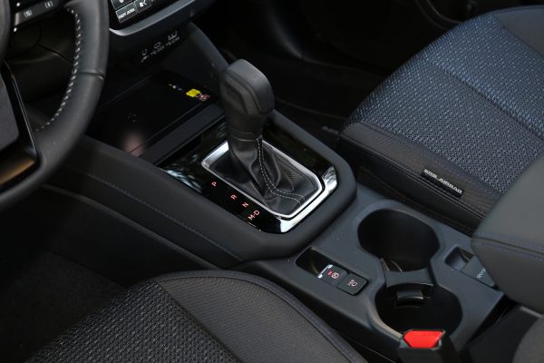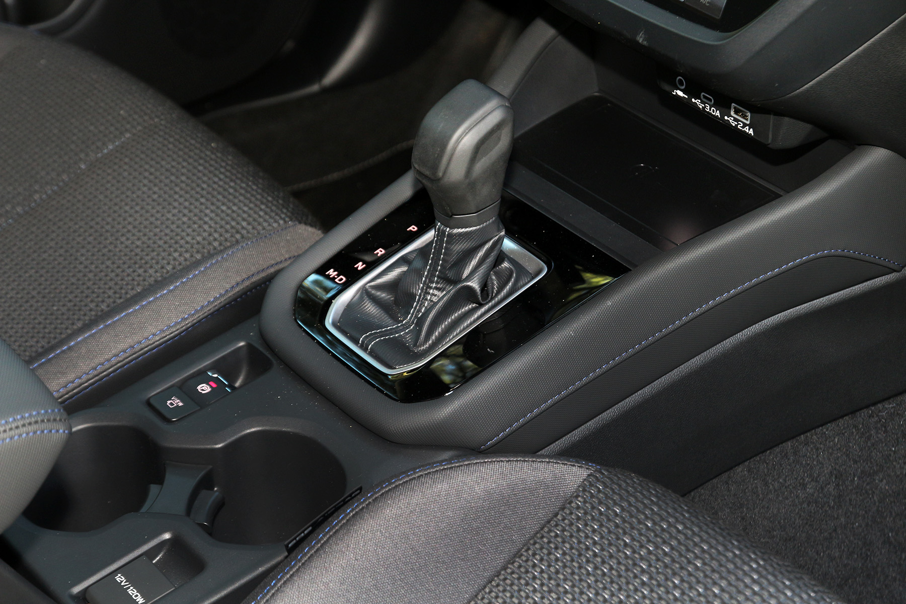 Για τη μετάδοση της κίνησης συναντάμε αρχικά ένα κιβώτιο CVT Lineartronic, το οποίο δείχνει να προσαρμόζεται καλά σε κάθε συνθήκη, ανεξαρτήτως ταχύτητας και φορτίου κινητήρα. Έχει ωραία απόκριση στις εντολές του δεξιού πεντάλ και ταυτόχρονα διαθέτει 7 προεπιλεγμένες σχέσεις, για όσους αποφασίσουν να πάρουν τον έλεγχο στα χέρια τους, μέσω των paddles.