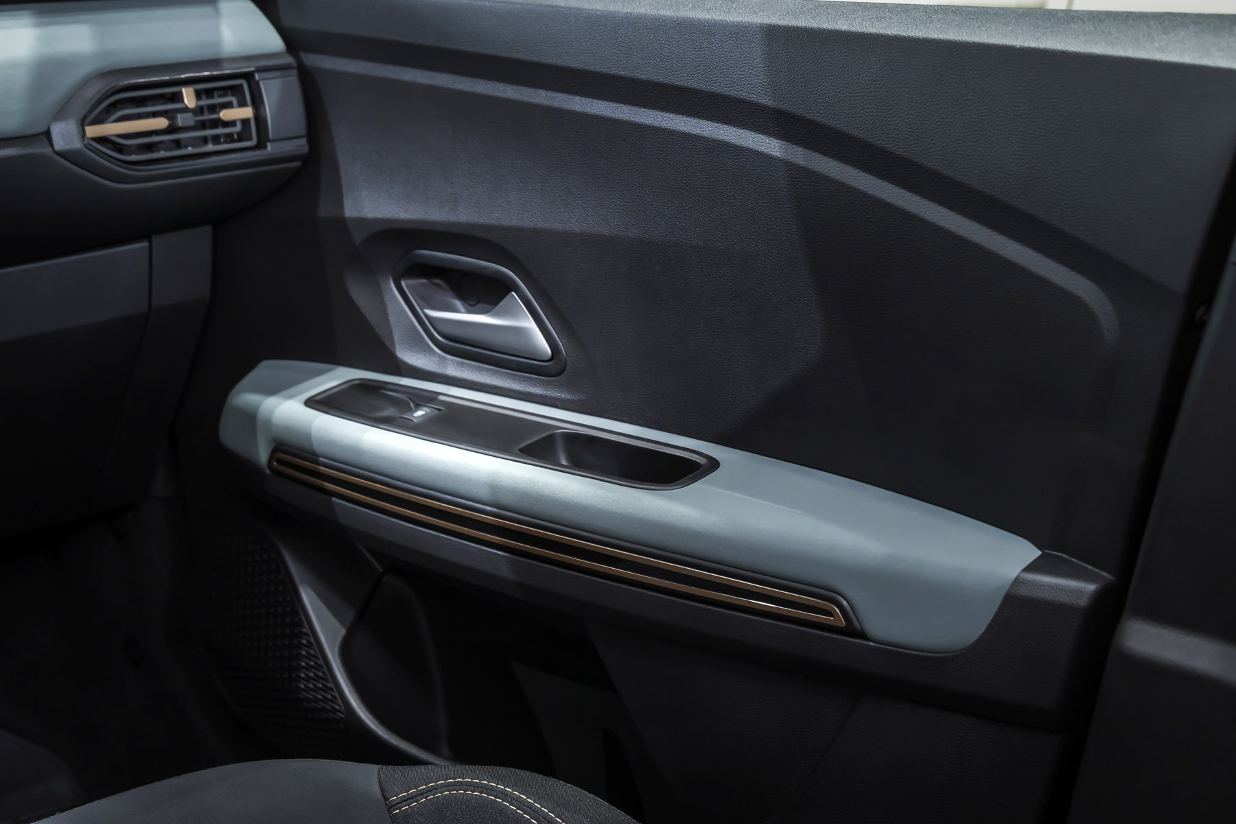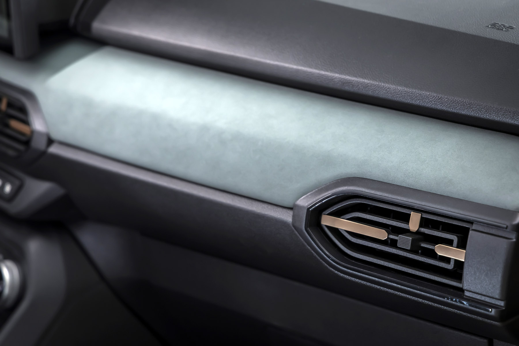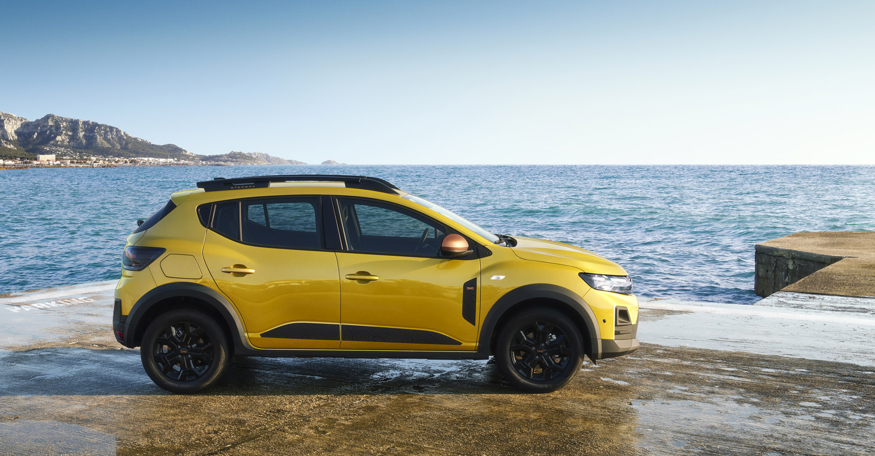 Στην περίπτωση του Stepway, ξεχωρίζουν οι ματ μαύρες λεπτομέρειες και τα προστατευτικά από το υλικό Starkle, που περιέχει 20% ανακυκλωμένο πλαστικό και παραμένει «άβαφτο» για λόγους αντοχής και βιωσιμότητας.