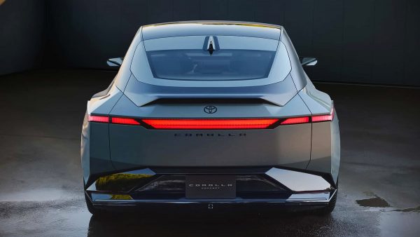 Τα πίσω φωτιστικά σώματα είναι ενωμένα με μια LED γραμμή που επαναλαμβάνει το μοτίβο της εμπρός όψης, και το όνομα «Corolla» δεσπόζει στην πόρτα του χώρου αποσκευών.