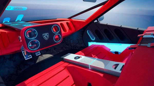 Στο εσωτερικό, το βλέμμα πέφτει πρώτα στις τέσσερις εντυπωσιακές κόκκινες θέσεις, περισσότερο σαν γλυπτικές κατασκευές από αφρώδες υλικό παρά παραδοσιακά καθίσματα. Η καμπίνα είναι επενδυμένη με ανακυκλωμένα υλικά, ενώ δεν υπάρχει κανένα συμβατικό όργανο.