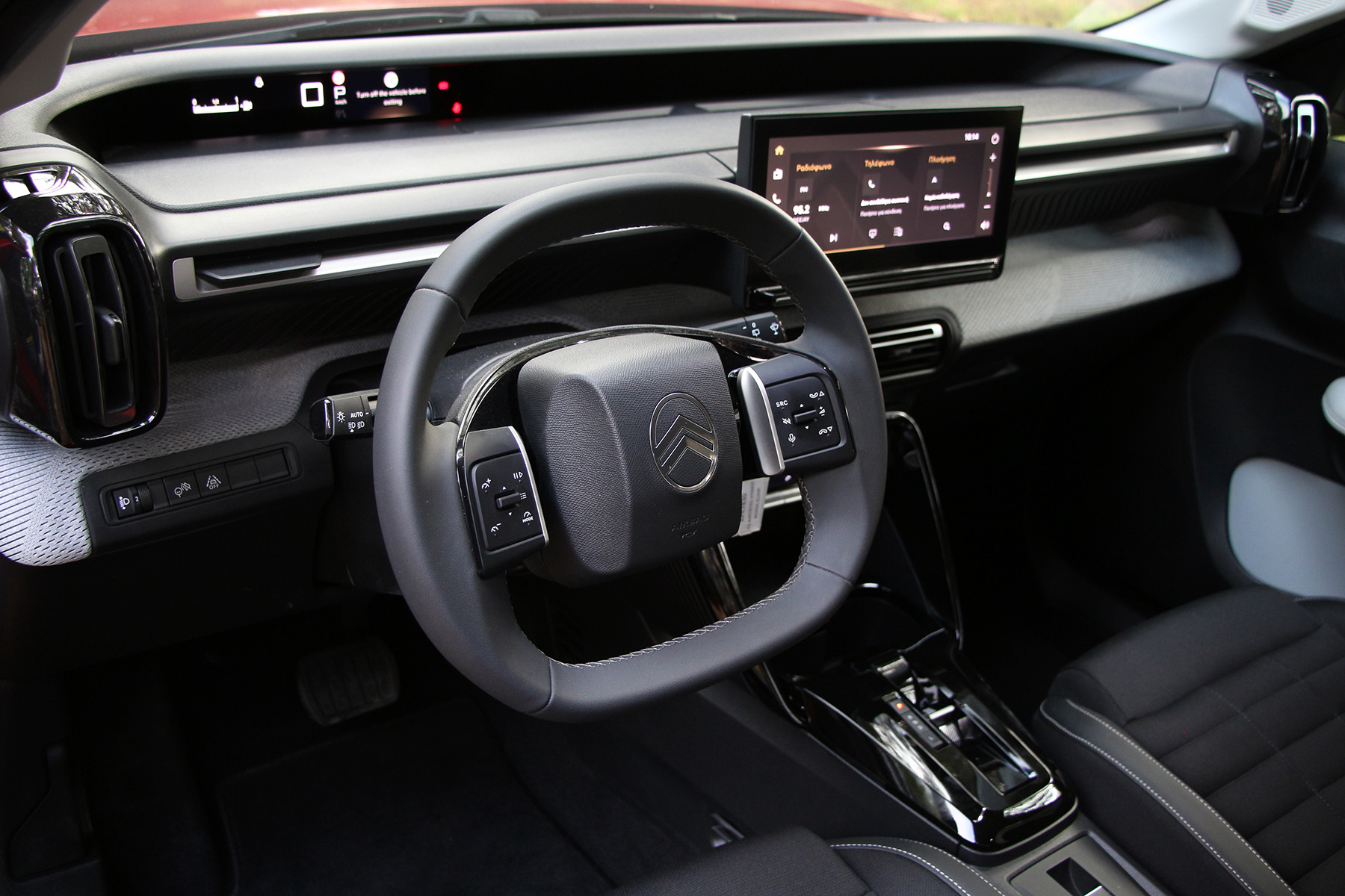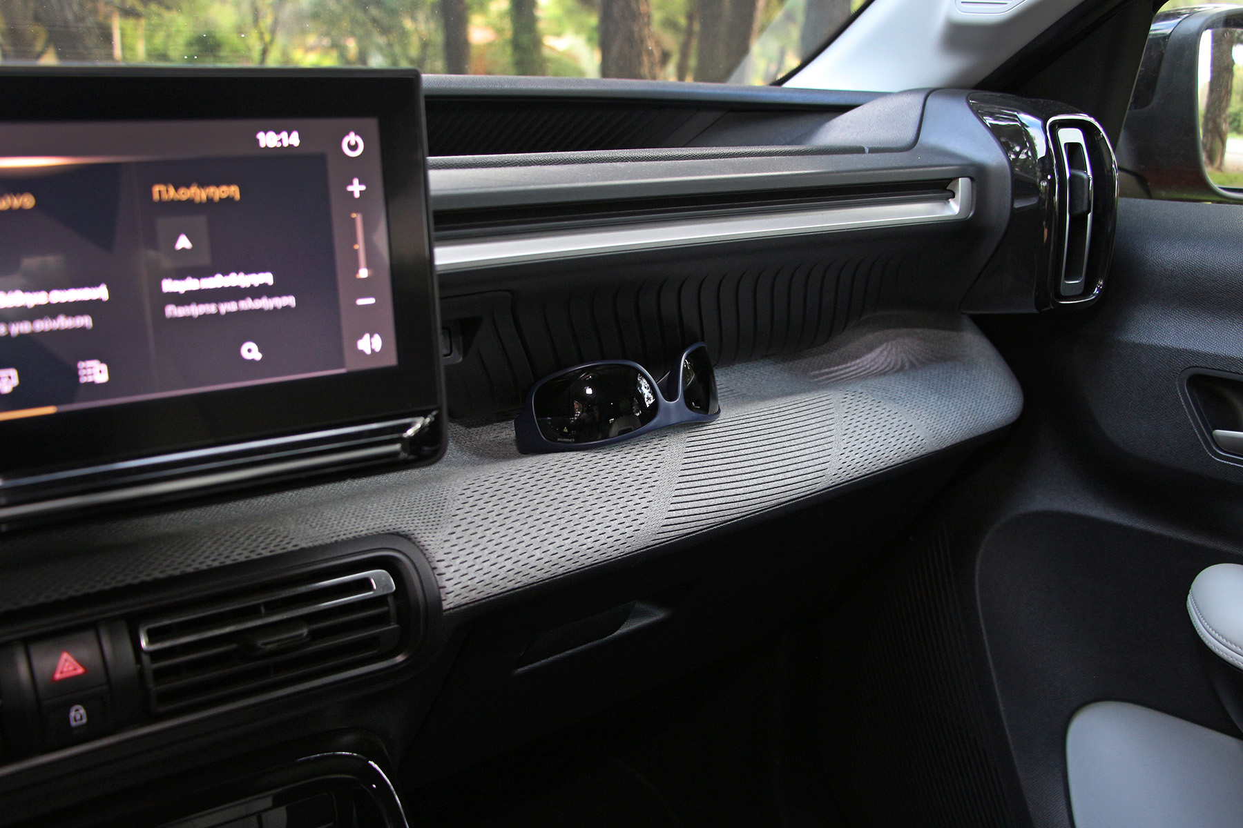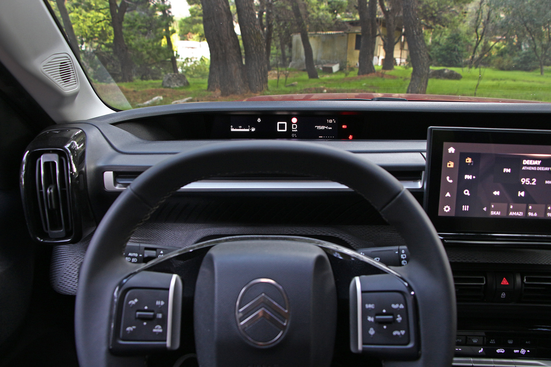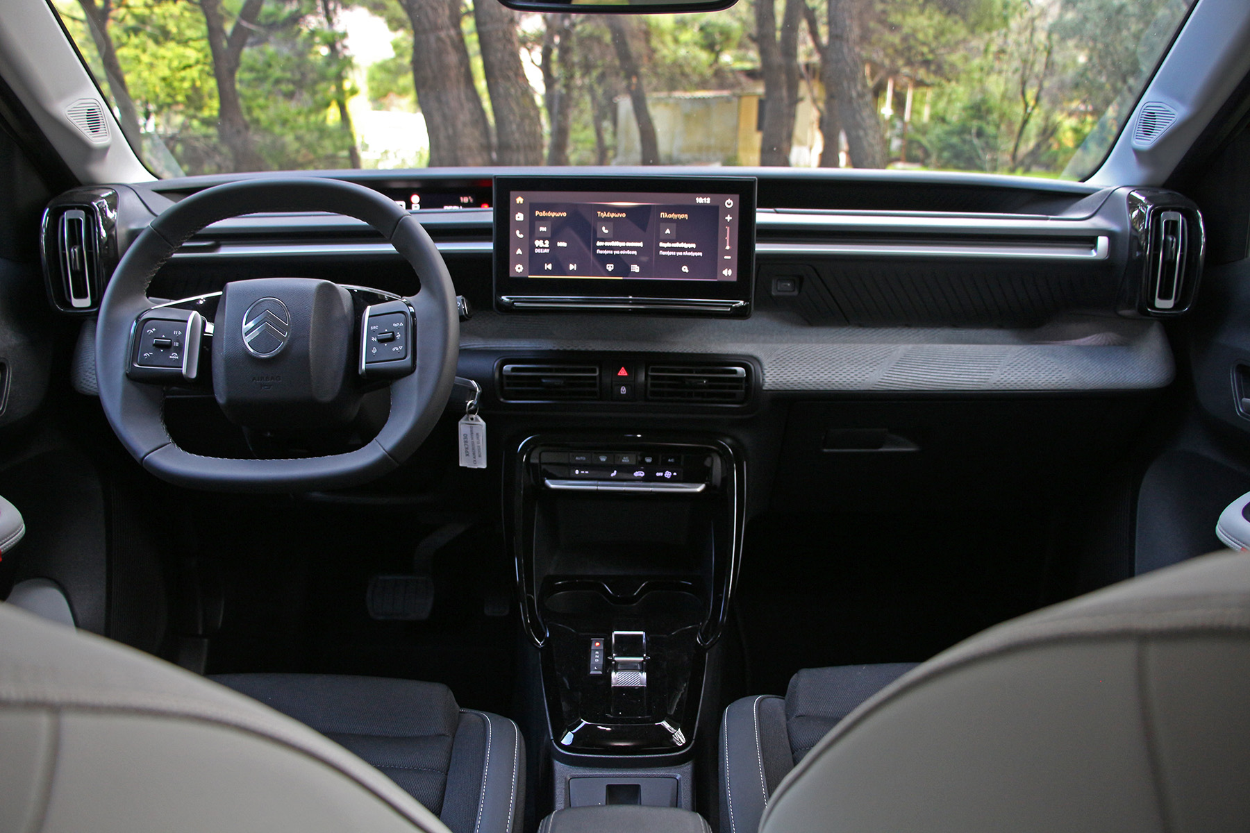 Στο εσωτερικό του κομψού Citroen οι εκπλήξεις δεν είναι το ίδιο μεγάλες. Πώς να ήταν άλλωστε, όταν ο όμιλος Stellantis φροντίζει για τις μπόλικες ομοιότητες στα μοντέλα της αντίστοιχης κατηγορίας.