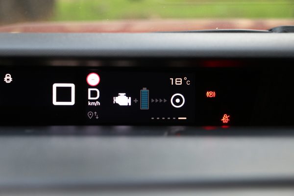 Κάθε φορά που αφήνεις το δεξί πεντάλ ή πατάς φρένο το σύστημα ανάκτησης ενέργειας φροντίζει να γεμίζει τη μικρή μπαταρία 0,89 kWh (το βλέπεις και στο Head Up Display), η οποία είναι τοποθετημένη κάτω από το κάθισμα του οδηγού.