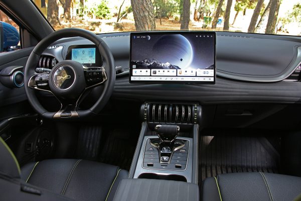 Είναι όμως και άλλα στοιχεία εξοπλισμού, όπως η πανοραμική οροφή, τα θερμαινόμενα/ αεριζόμενα καθίσματα με επένδυση vegan δέρματος και βέβαια το πλήρες πακέτο ADAS, που κάνει το Atto 3 μία πλούσια εξοπλιστικά πρόταση.