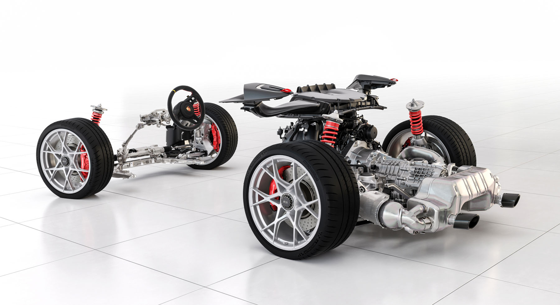 Για να φιλοξενήσει κινητήρα στο κέντρο, όπως στις μέχρι τώρα εκδόσεις της 718, η πλατφόρμα πρέπει να ανασχεδιαστεί με νέο υποπλαίσιο, διαφορετικό πίσω τμήμα και δάπεδο που να μπορεί να «υποστηρίξει» τον μηχανικό συνδυασμό κινητήρα/ κιβωτίου.