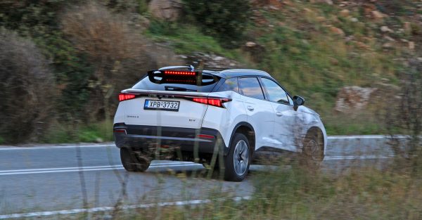 Στο δρόμο, το Omoda 5 EV συμπεριφέρεται ως ένα άνετο και με καλή ποιότητα κύλισης SUV. Οι αναρτήσεις του δεν σου δίνουν την ιδιαίτερα δεμένη αίσθηση άλλων ανταγωνιστών, διαχειρίζονται όμως με μεγάλη αξιοπρέπεια τις ανωμαλίες του οδοστρώματος και προστατεύουν τους επιβάτες από την όποια καταπόνηση. Οπότε, είτε σε ταξίδια στην εθνική, είτε στην καθημερινότητα της πόλης, η όποια μετακίνηση γίνεται ξεκούραστα.