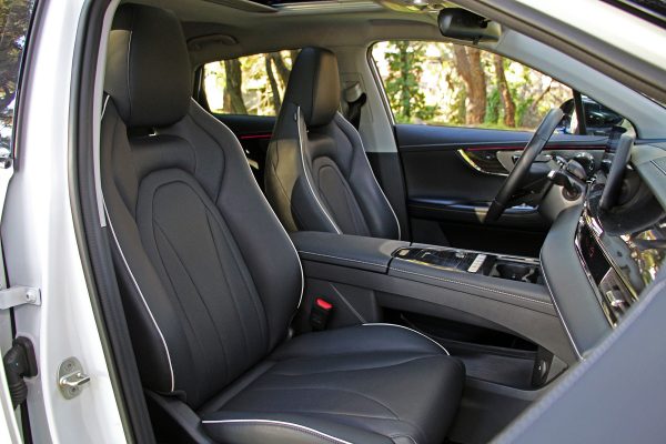 Τα μπροστινά καθίσματα είναι αρκετά άνετα, με επαρκή πλευρική στήριξη, ηλεκτρικές ρυθμίσεις ενώ είναι και θερμαινόμενα/ ψυχόμενα. Ειδικά για τον οδηγό, θα ρυθμίσει εύκολα τη θέση στα μέτρα του, με την περιμετρική ορατότητα να βρίσκεται στο μέσο της κατηγορίας.