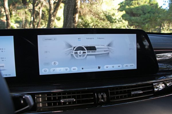 Στο ταμπλό δεσπόζουν δύο οθόνες 12,3” σε σειρά, σε ένα ενιαίο πάνελ, ενώ η έκδοση της δοκιμής περιελάμβανε επίσης HUD. Η πρώτη οθόνη, που αφορά στον πίνακα οργάνων, θα λέγαμε πως παρουσιάζει ένα μεγάλο όγκο πληροφορίας και μπορεί να παραμετροποιηθεί, με βάση τα γούστα του οδηγού. Η δεύτερη οθόνη πάλι, του infotainment, θα δυσκολέψει κάπως τα πράγματα.