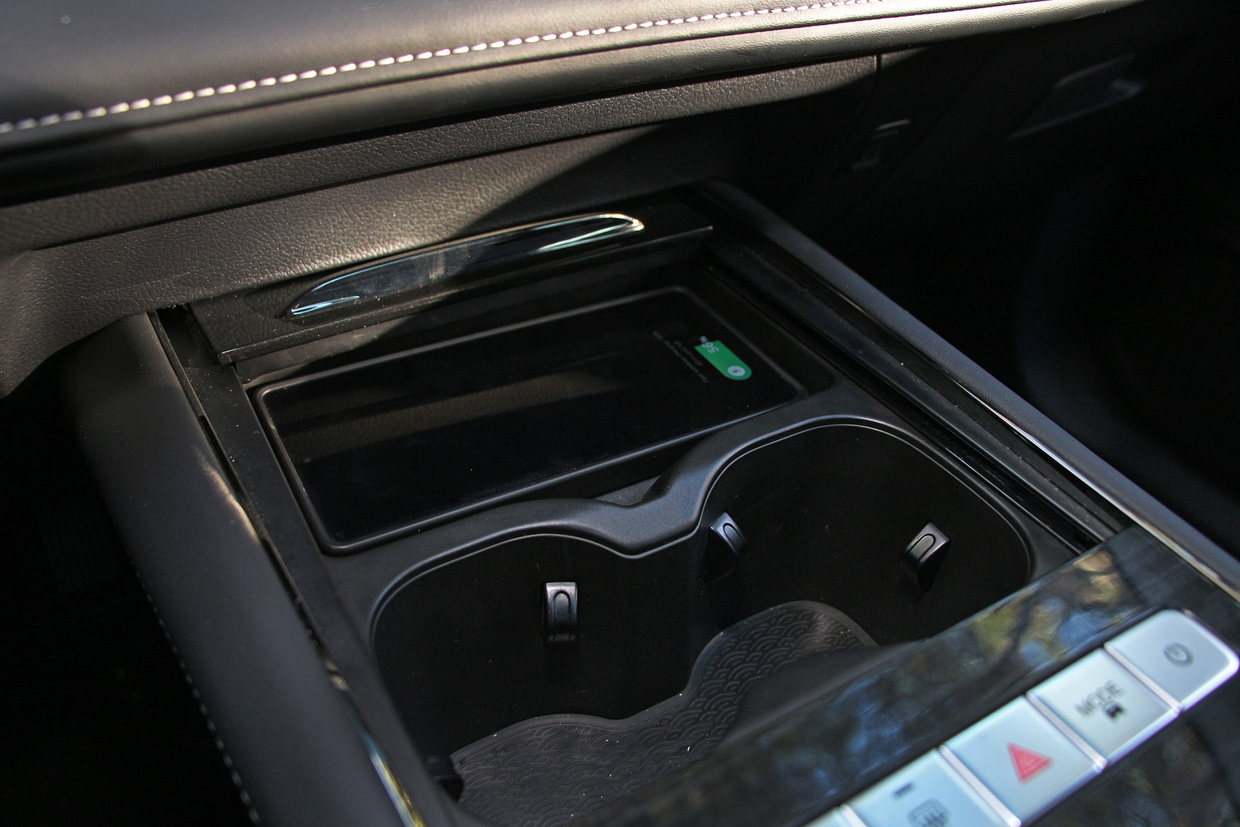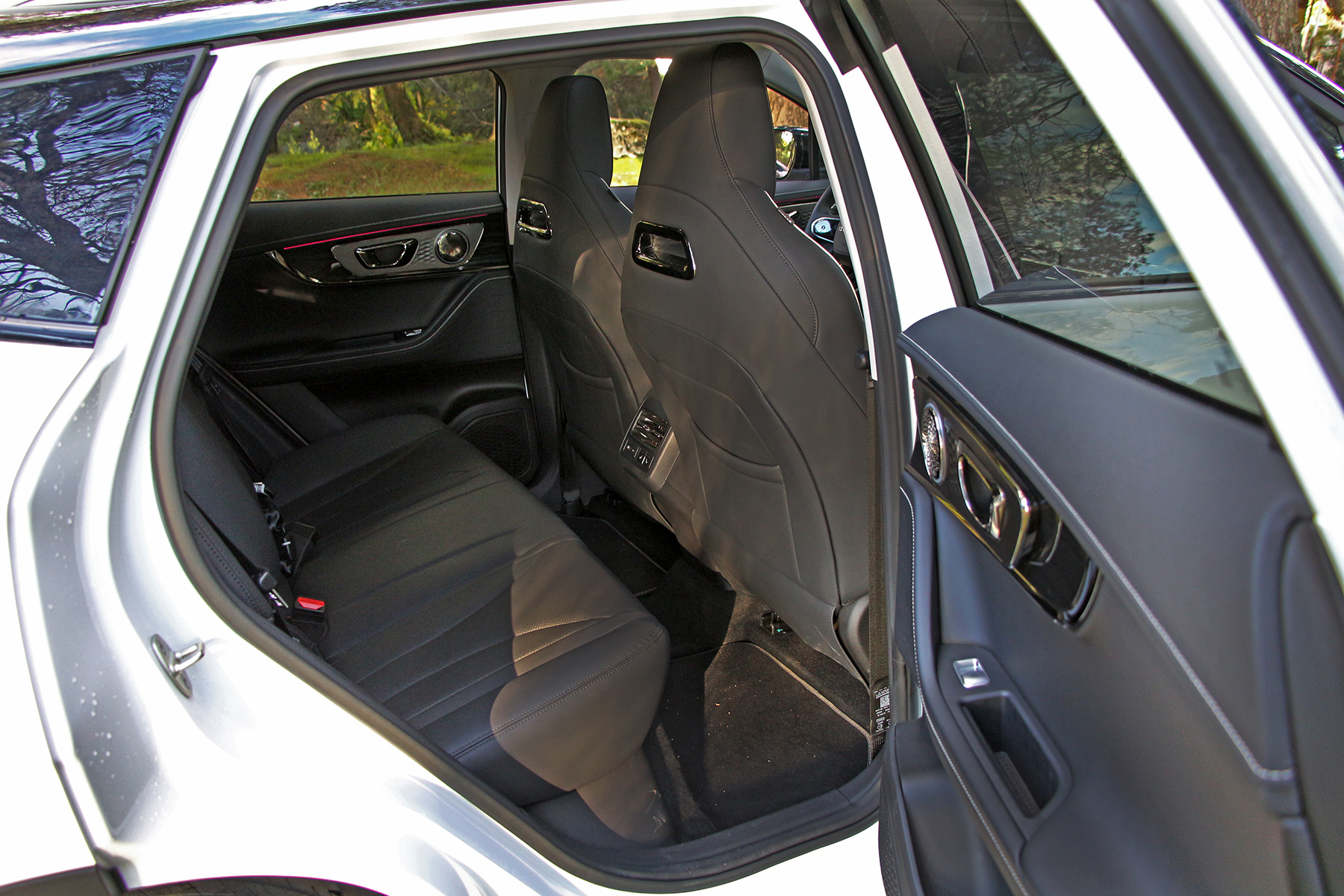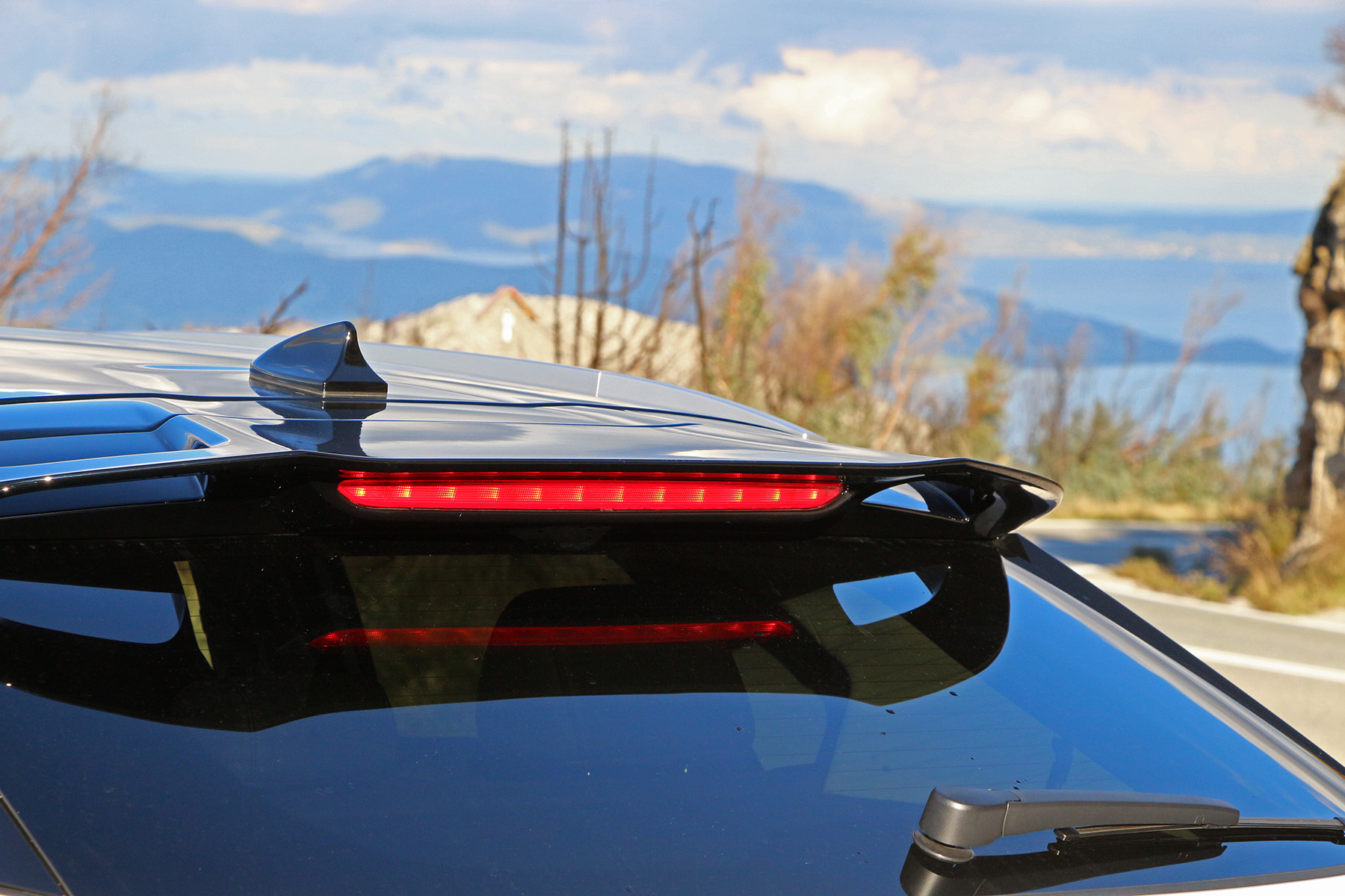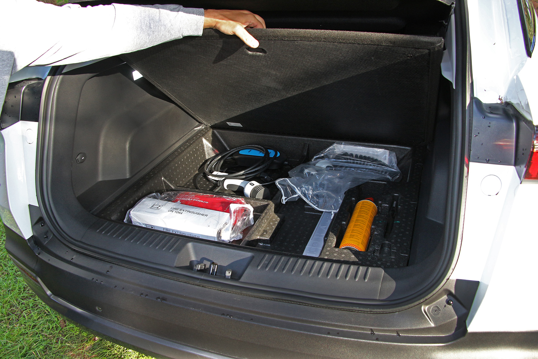 Σχετικά περιορισμένο κρίνεται και το διαμέρισμα των αποσκευών. Η πέμπτη πόρτα ανοίγει ηλεκτρικά, αποκαλύπτοντας ένα απόλυτα τετραγωνισμένο μεν αλλά ρηχό και με χωρητικότητα 360 lt πορτμπαγκάζ. Υπάρχει βέβαια ένα δεύτερο δάπεδο, αυτό όμως είναι περισσότερο για να τακτοποιείς τα καλώδια φόρτισης, άντε και κάνα μικροαντικείμενο ακόμα.
