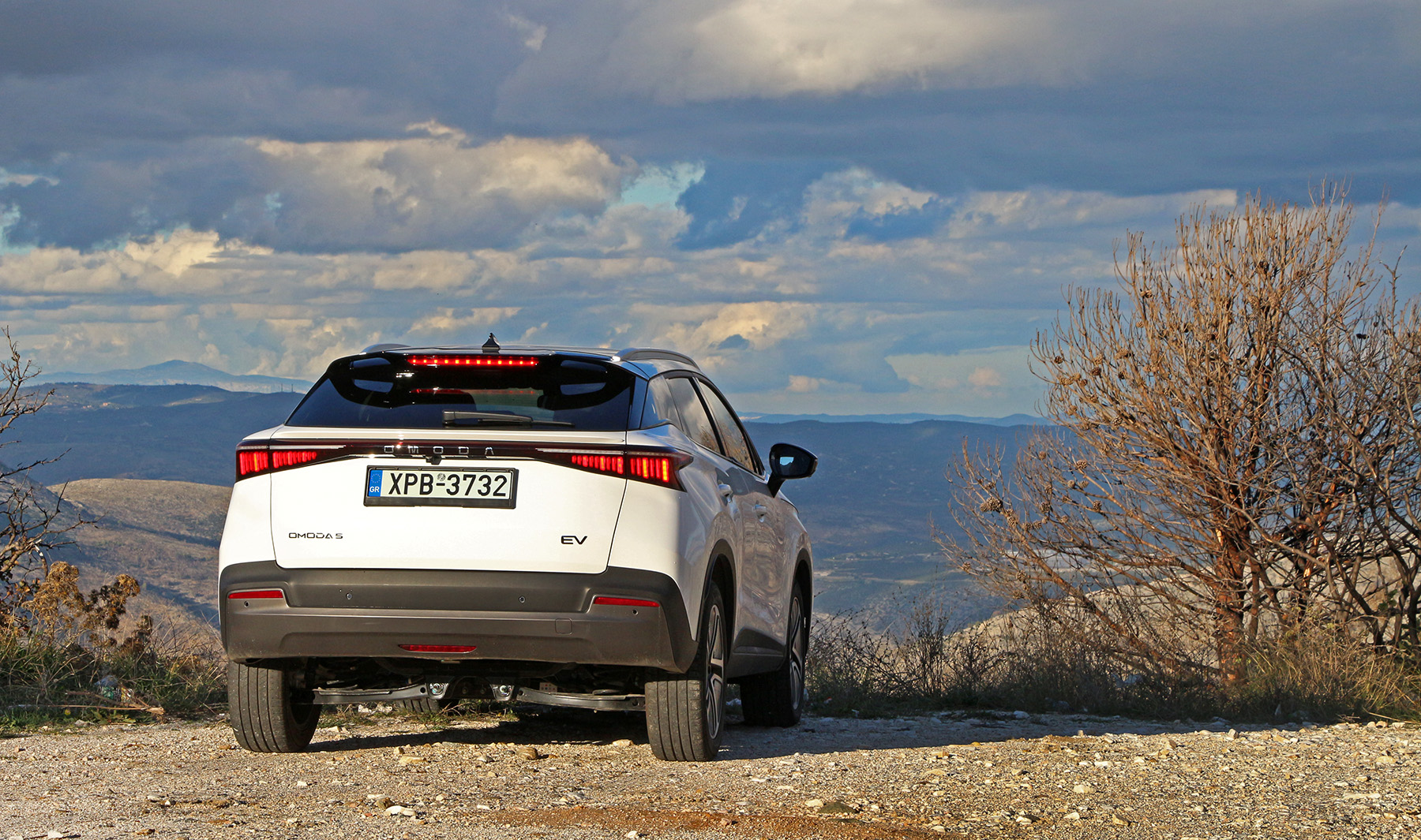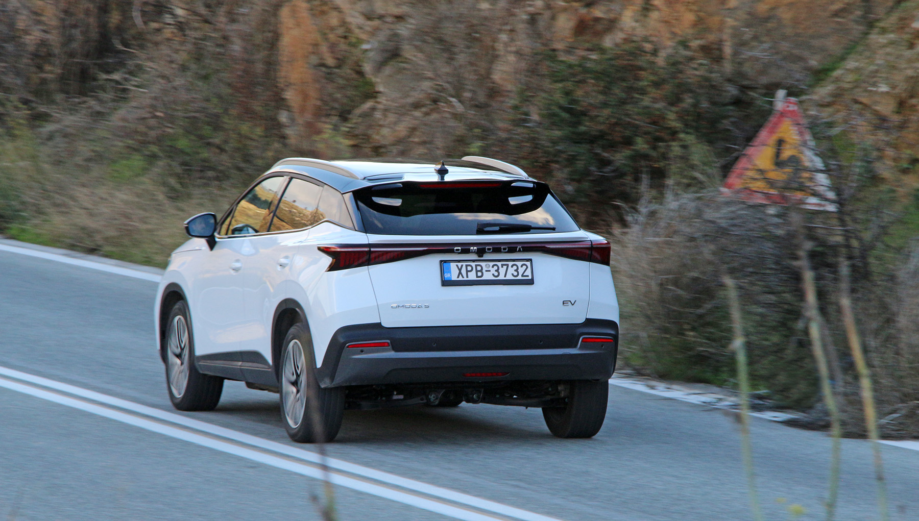 Στο δρόμο, το Omoda 5 EV συμπεριφέρεται ως ένα άνετο και με καλή ποιότητα κύλισης SUV. Οι αναρτήσεις του δεν σου δίνουν την ιδιαίτερα δεμένη αίσθηση άλλων ανταγωνιστών, διαχειρίζονται όμως με μεγάλη αξιοπρέπεια τις ανωμαλίες του οδοστρώματος και προστατεύουν τους επιβάτες από την όποια καταπόνηση. Οπότε, είτε σε ταξίδια στην εθνική, είτε στην καθημερινότητα της πόλης, η όποια μετακίνηση γίνεται ξεκούραστα.