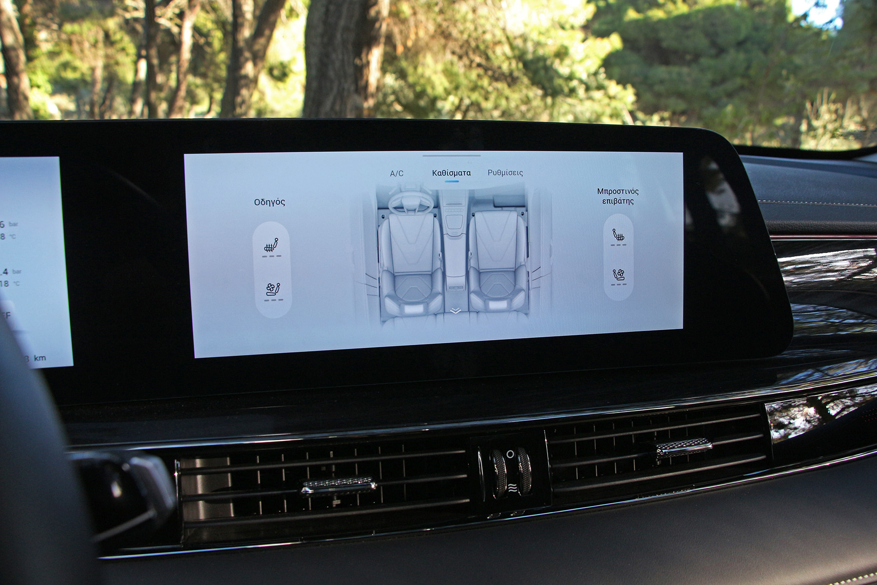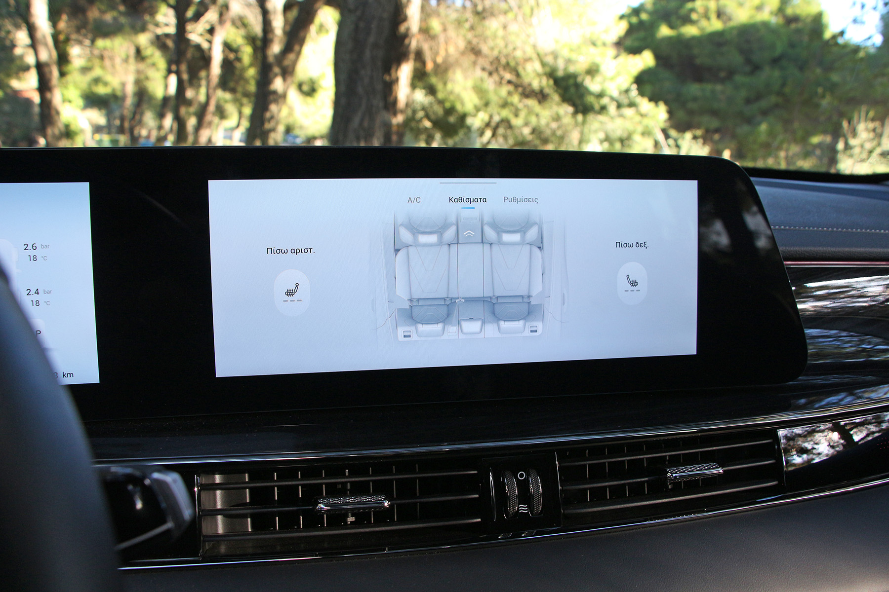 Τα μπροστινά καθίσματα είναι αρκετά άνετα, με επαρκή πλευρική στήριξη, ηλεκτρικές ρυθμίσεις ενώ είναι και θερμαινόμενα/ ψυχόμενα. Ειδικά για τον οδηγό, θα ρυθμίσει εύκολα τη θέση στα μέτρα του, με την περιμετρική ορατότητα να βρίσκεται στο μέσο της κατηγορίας.