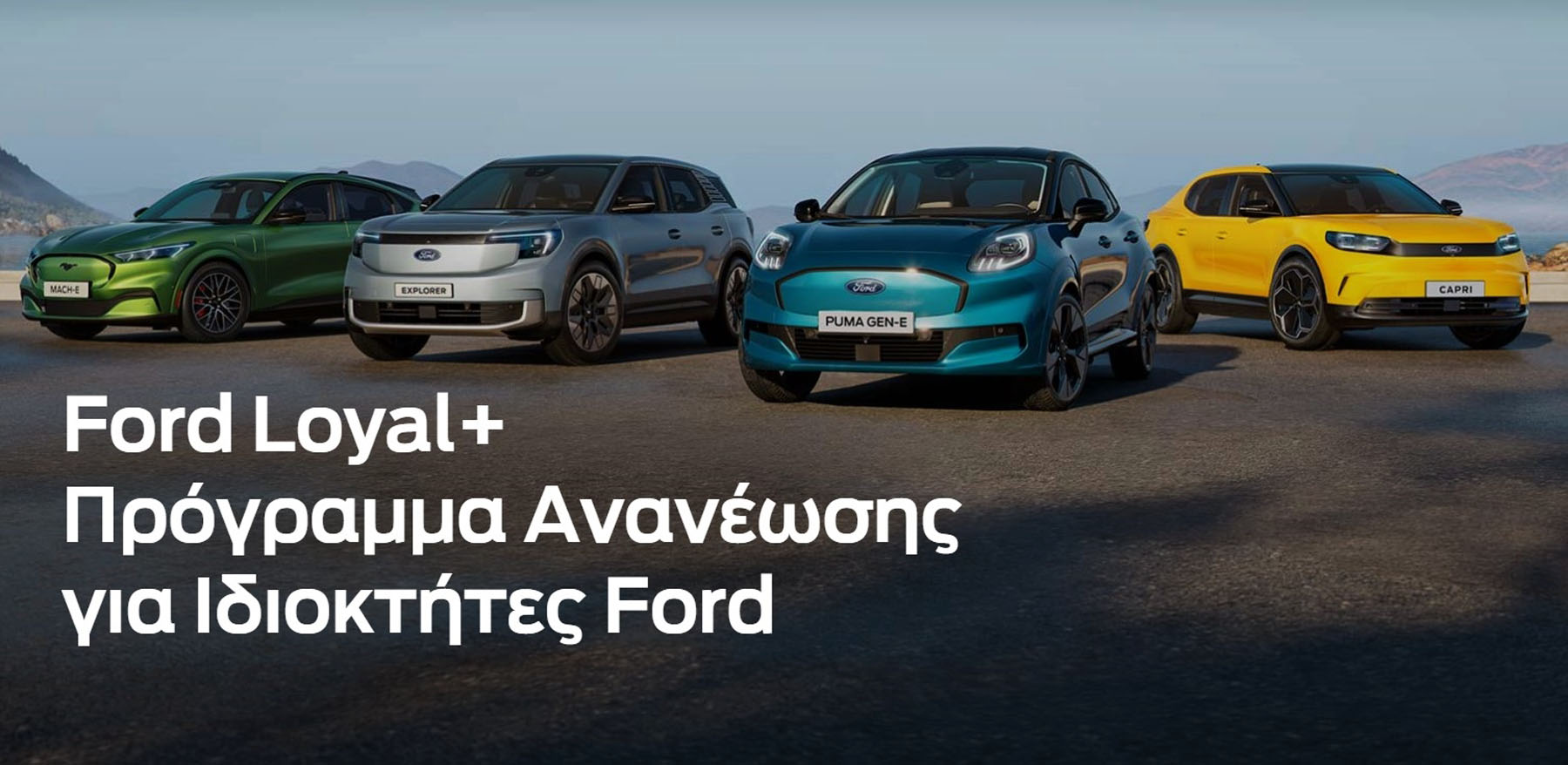 Η Ford Motor Ελλάς εγκαινιάζει το Ford Loyal+, ένα πρόγραμμα ανταλλαγής που απευθύνεται αποκλειστικά σε υφιστάμενους πελάτες της μάρκας. Στόχος του είναι να διευκολύνει την αντικατάσταση του παλαιού Ford με ένα νέο, προσφέροντας ευνοϊκούς όρους και οικονομικά κίνητρα, τόσο για ιδιώτες όσο και για ατομικές επιχειρήσεις.