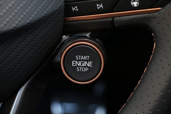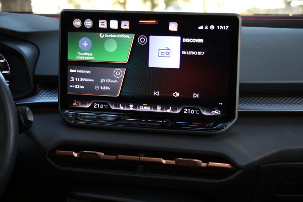 Το start button στο τιμόνι μαζί με τον διακόπτη για τα drive modes, η κλίση της κονσόλας προς τον οδηγό και τα τύπου μπάκετ καθίσματα, μαζί με τις αποχρώσεις του χαλκού, δίνουν ένα σπορ περιβάλλον που αρέσει χωρίς να ξεχνά τις ανέσεις αλλά και το μοντέρνο στοιχείο.