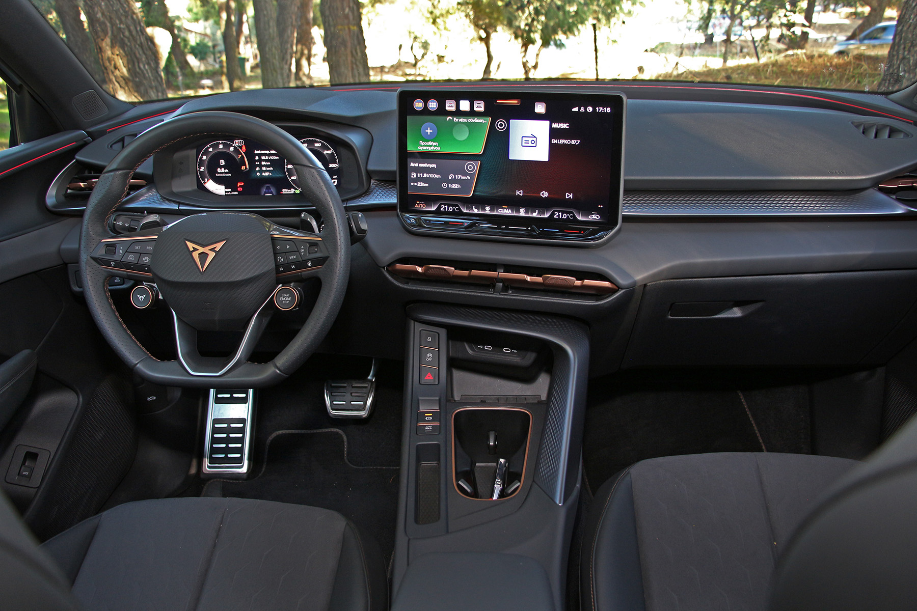 Στο εσωτερικό συνεχίζεται η σπορ απήχηση του ισπανικού μοντέλου, ακόμη και αν τα πράγματα είναι πιο γνώριμα λόγω της επαφής με την υπόλοιπη γκάμα CUPRA.