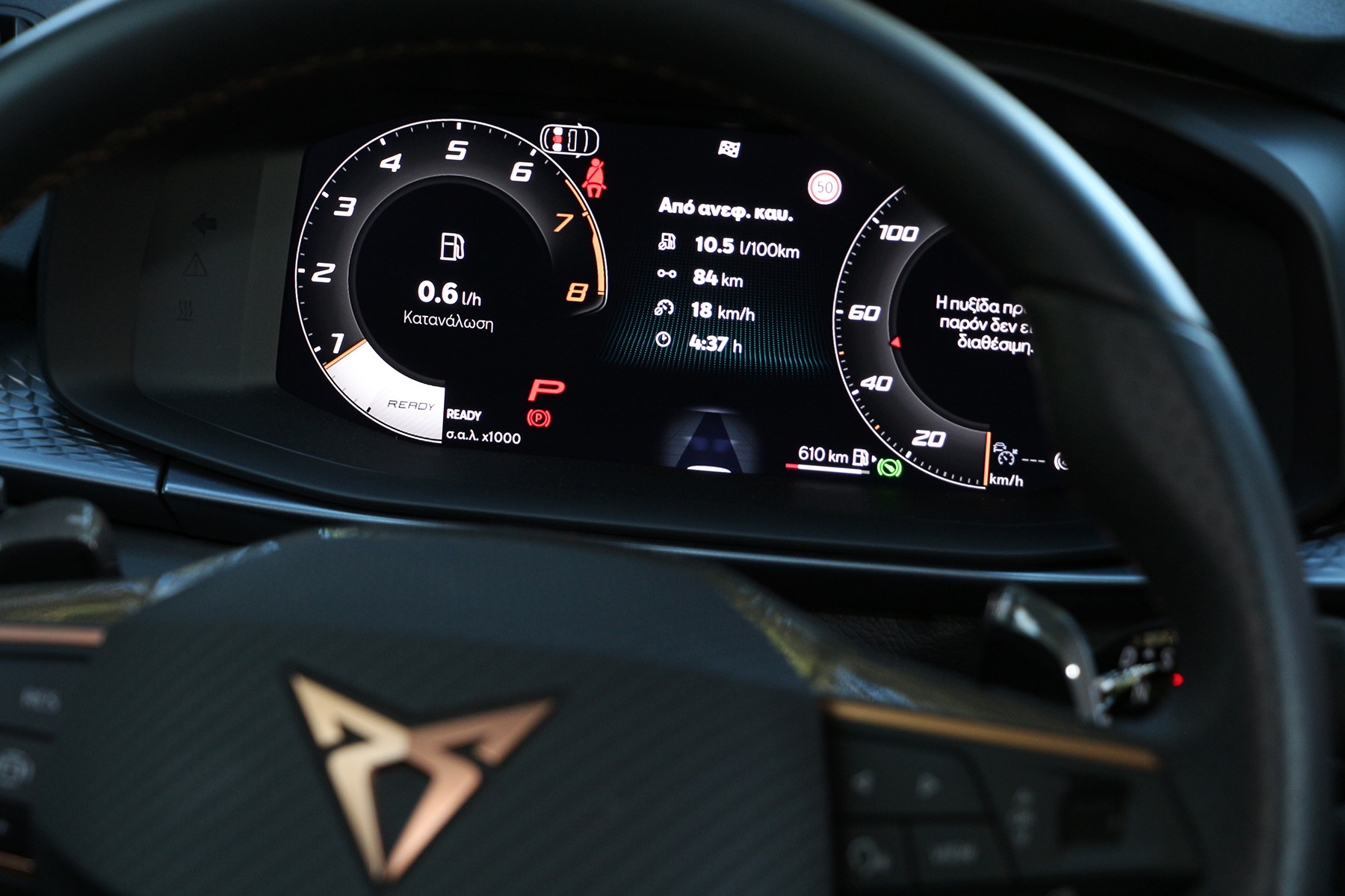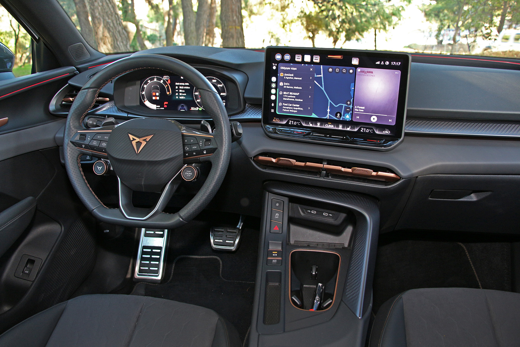 Τόσο η επιλογή sport μέσα από τα οδηγικά modes (δεν υπάρχει επιλογή CUPRA), o ήχος της εξάτμισης, τα puddles πίσω από το τιμόνι, τα καθίσματα αλλά και το σφιχτό setup της ανάρτησης, δε θα σε αφήσουν με παράπονο.