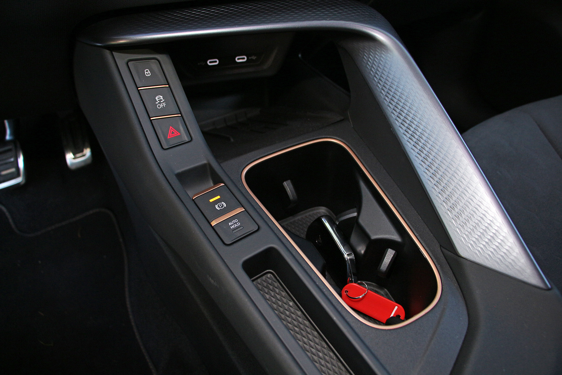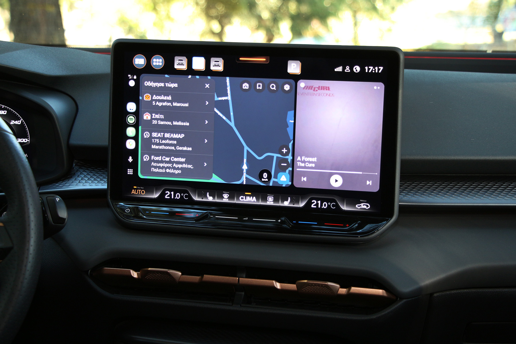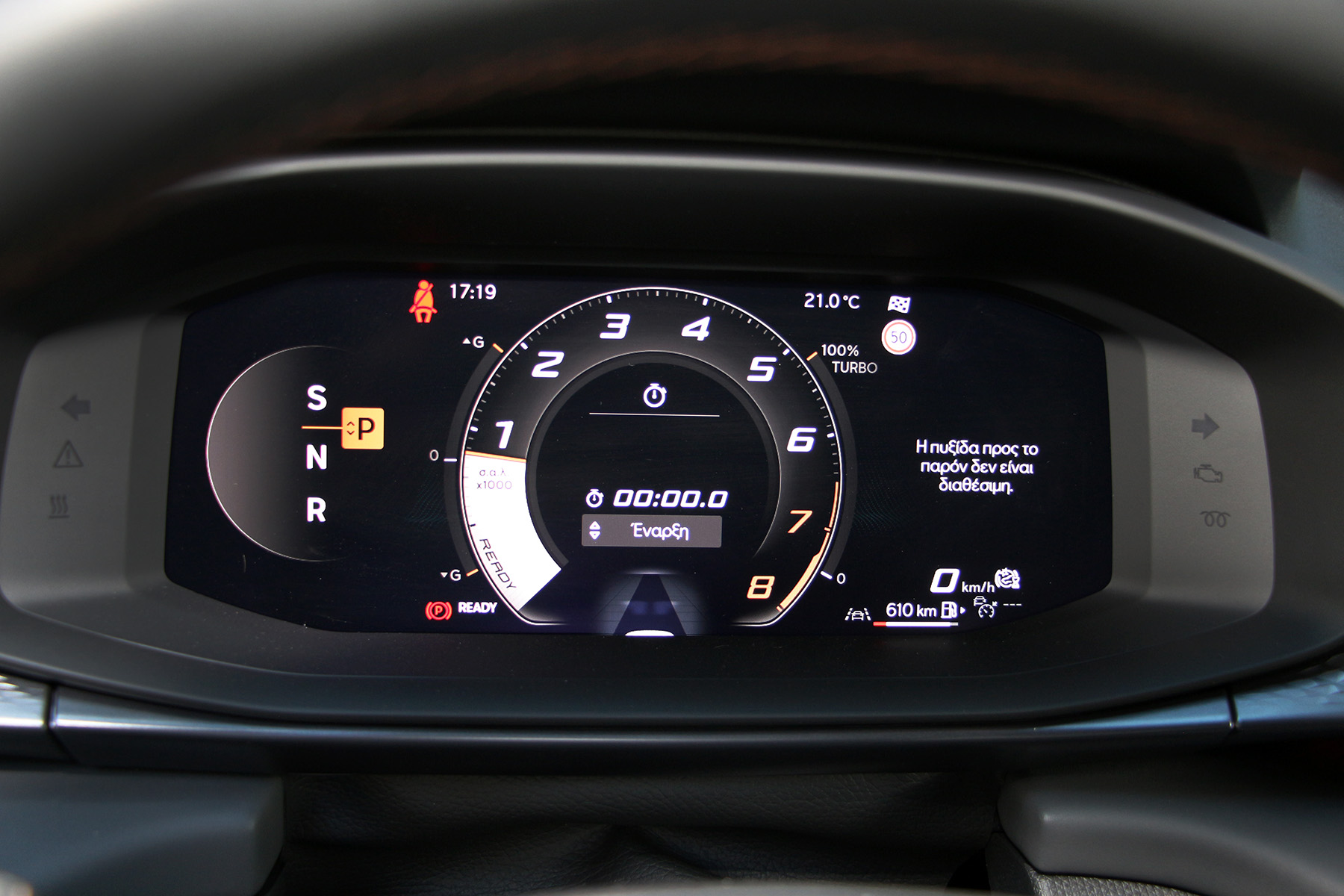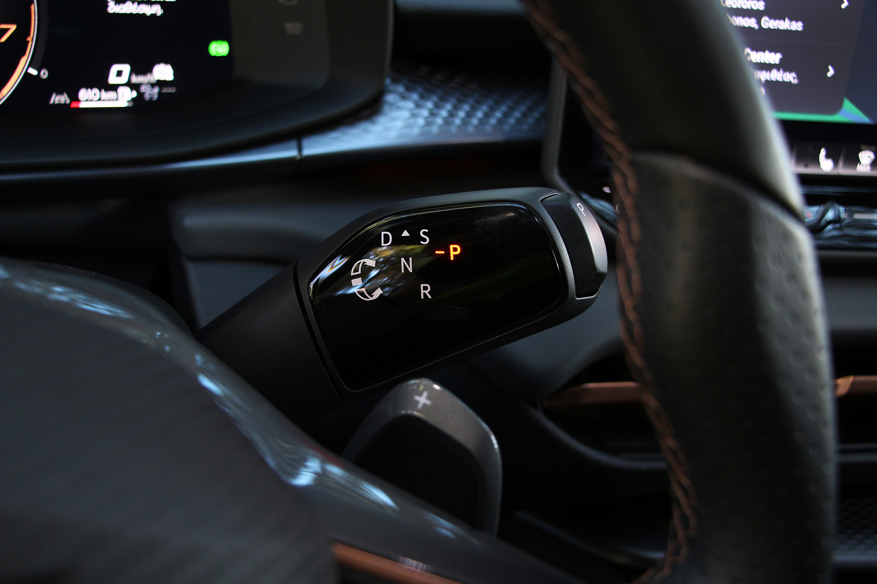 Το start button στο τιμόνι μαζί με τον διακόπτη για τα drive modes, η κλίση της κονσόλας προς τον οδηγό και τα τύπου μπάκετ καθίσματα, μαζί με τις αποχρώσεις του χαλκού, δίνουν ένα σπορ περιβάλλον που αρέσει χωρίς να ξεχνά τις ανέσεις αλλά και το μοντέρνο στοιχείο.