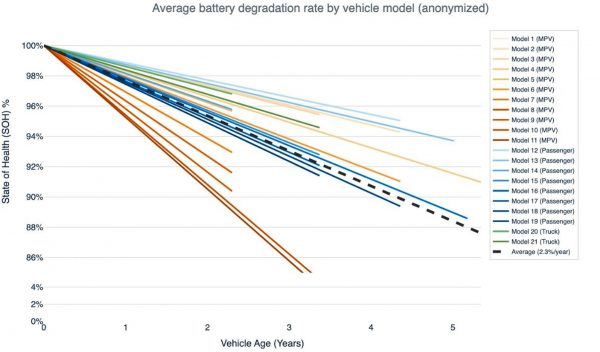 Η βασική διαπίστωση είναι ότι η μέση ετήσια φθορά των στοιχείων της μπαταρίας αγγίζει το 2,3%. Με άλλα λόγια, κάθε χρόνο, το αυτοκίνητο χάνει ένα μικρό αλλά μετρήσιμο ποσοστό από τη διαθέσιμη χωρητικότητα της μπαταρίας του, κάτι που σε βάθος χρόνου επηρεάζει την αυτονομία.
