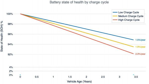 - Όταν λιγότερο από το 12% των φορτίσεων γίνεται σε ταχυφορτιστές DC, ο μέσος ετήσιος ρυθμός φθοράς είναι μόλις 1,5%.
