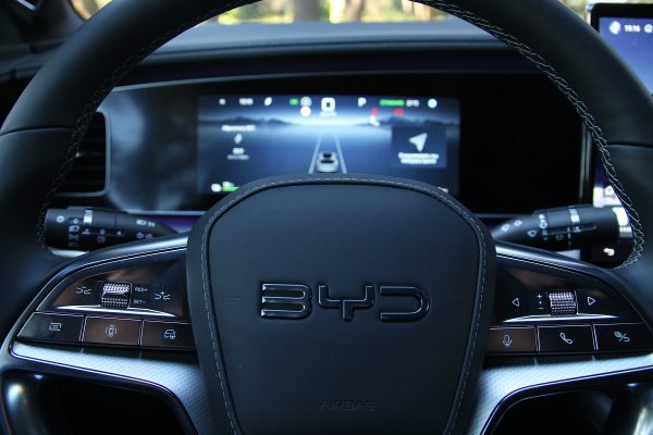 Το πρώτο πράγμα που μαγνητίζει τα βλέμματα είναι φυσικά η μεγάλη οθόνη των 15,6” η οποία δεσπόζει στο κέντρο του ταμπλό. Το τελευταίας γενιάς λογισμικό της BYD είναι σχετικά απλό στη χρήση και προσπαθεί να μην αποσπά ιδιαίτερα τον οδηγό.