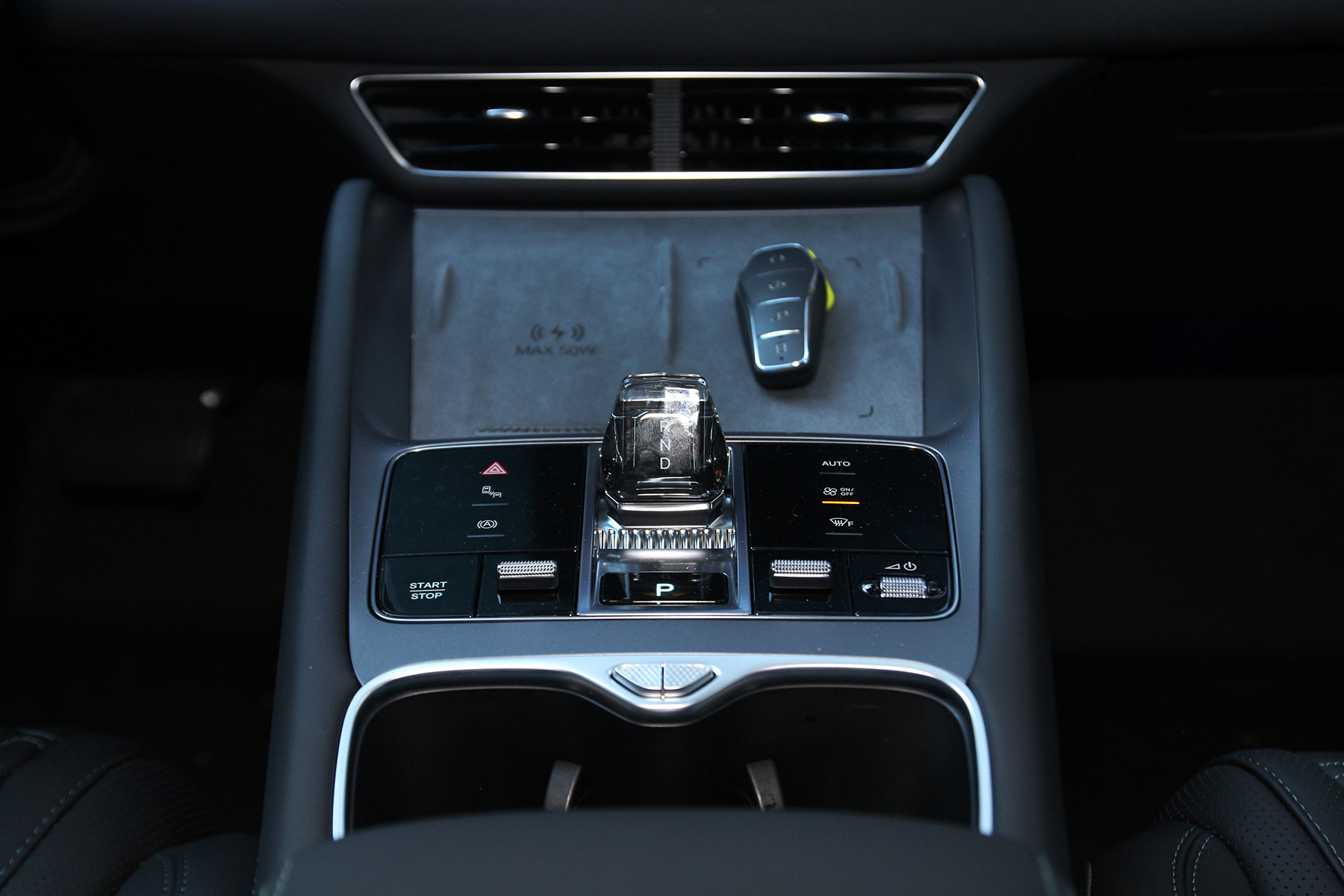 Υπάρχουν όμως αρκετές θέσεις για μικροαντικείμενα, θύρες USB, ασύρματη φόρτιση κινητών 50W και δύο ποτηροθήκες μεταβλητού βάθους, ώστε να δέχονται και πιο ψηλά ποτήρια/ μπουκάλια.