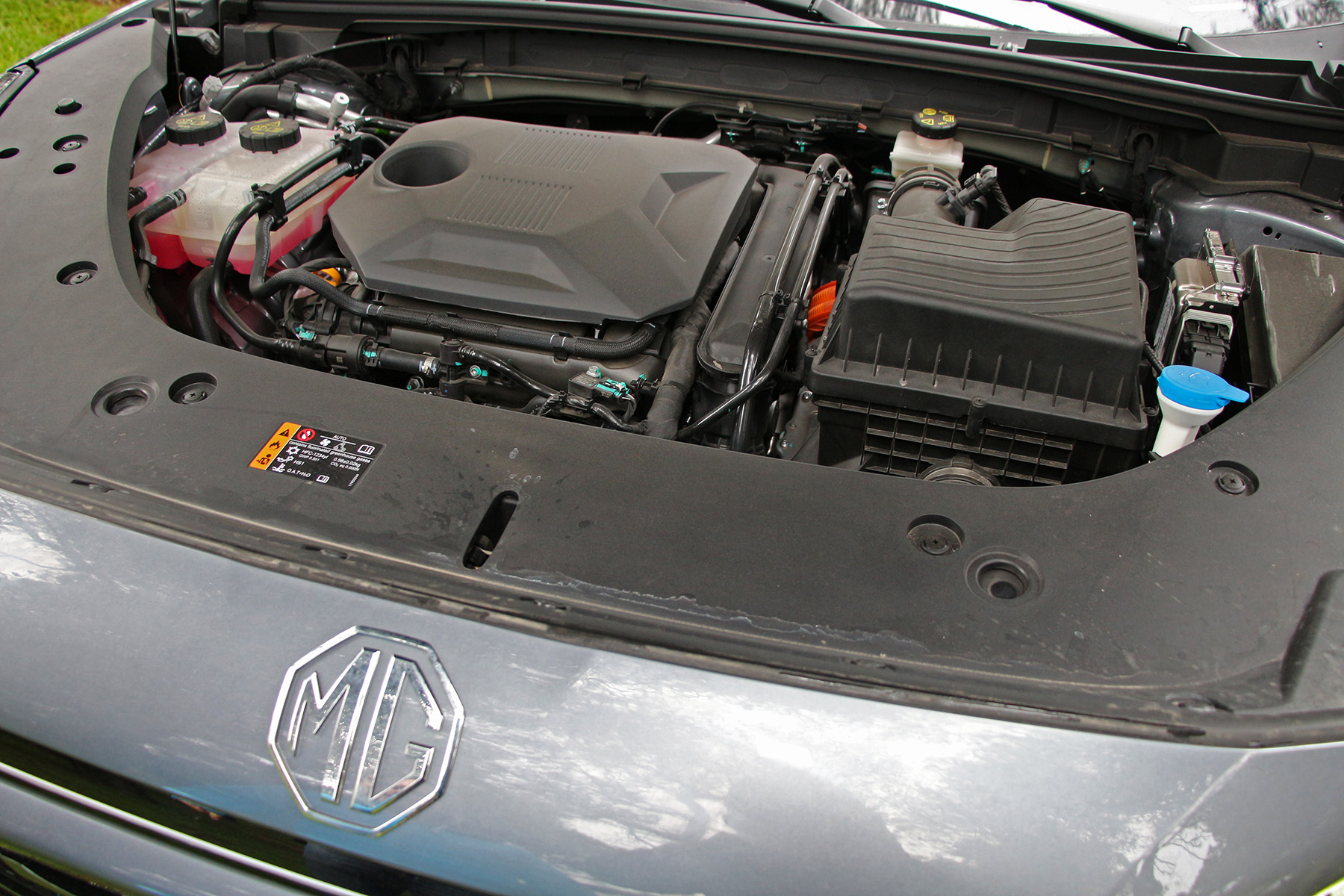 Το MG HS PHEV+ (έχει προστεθεί το plus στο υβριδικό σύστημα) εφοδιάζεται με τετρακύλινδρο turbo βενζινοκινητήρα απόδοσης 143 ίππων και 230 Nm ροπής. Λειτουργεί σε θερμοδυναμικό κύκλο Miller και αποδίδει 12 λιγότερους ίππους σε σχέση με το HS πρώτης γενιάς.