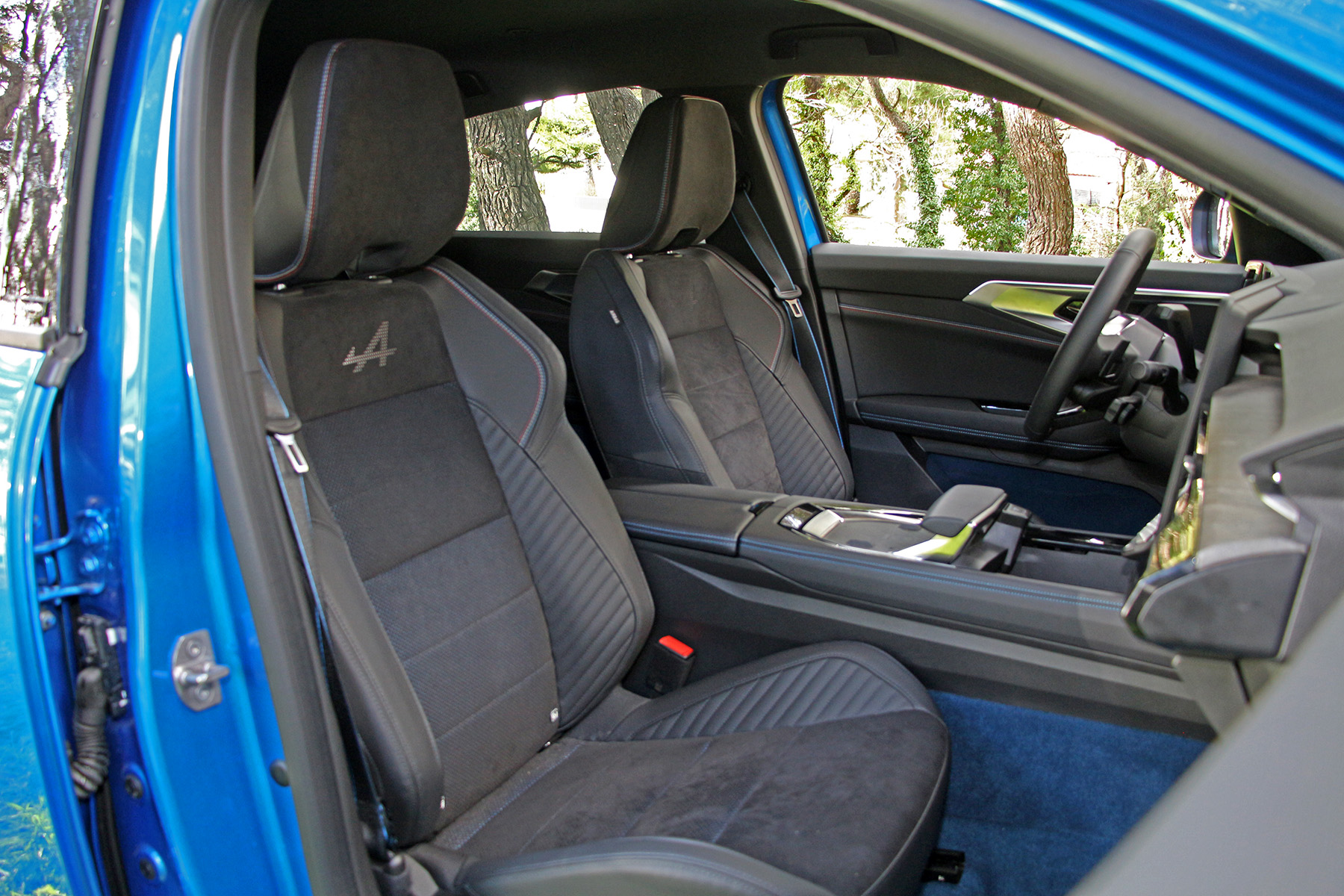 Ο οδηγός θα βολευτεί εύκολα σε ένα ωραίο σε σχεδιασμό, με φωτιζόμενο λογότυπο Alpine και καλή πλευρική στήριξη κάθισμα. Η θέση οδήγησης ρυθμίζεται παντοιοτρόπως και επιπρόσθετα προσφέρει θέρμανση και μασάζ.