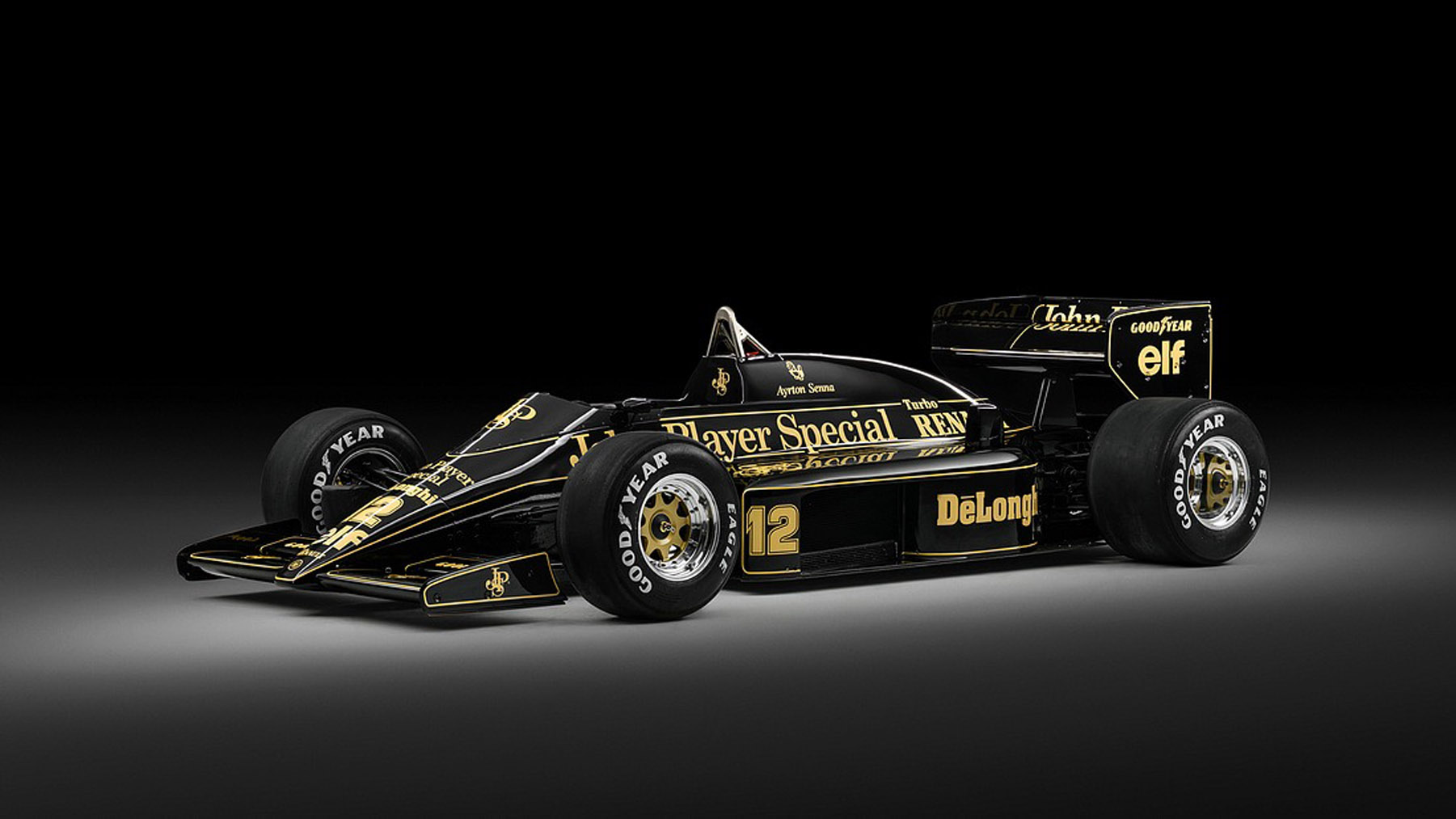 Η εμβληματική μαύρη και χρυσή εμφάνιση της John Player Special κοσμεί τη Lotus για τελευταία φορά το 1986, πριν η ομάδα στραφεί στους κινητήρες Honda και αποκτήσει νέο χορηγό την Camel την επόμενη χρονιά.