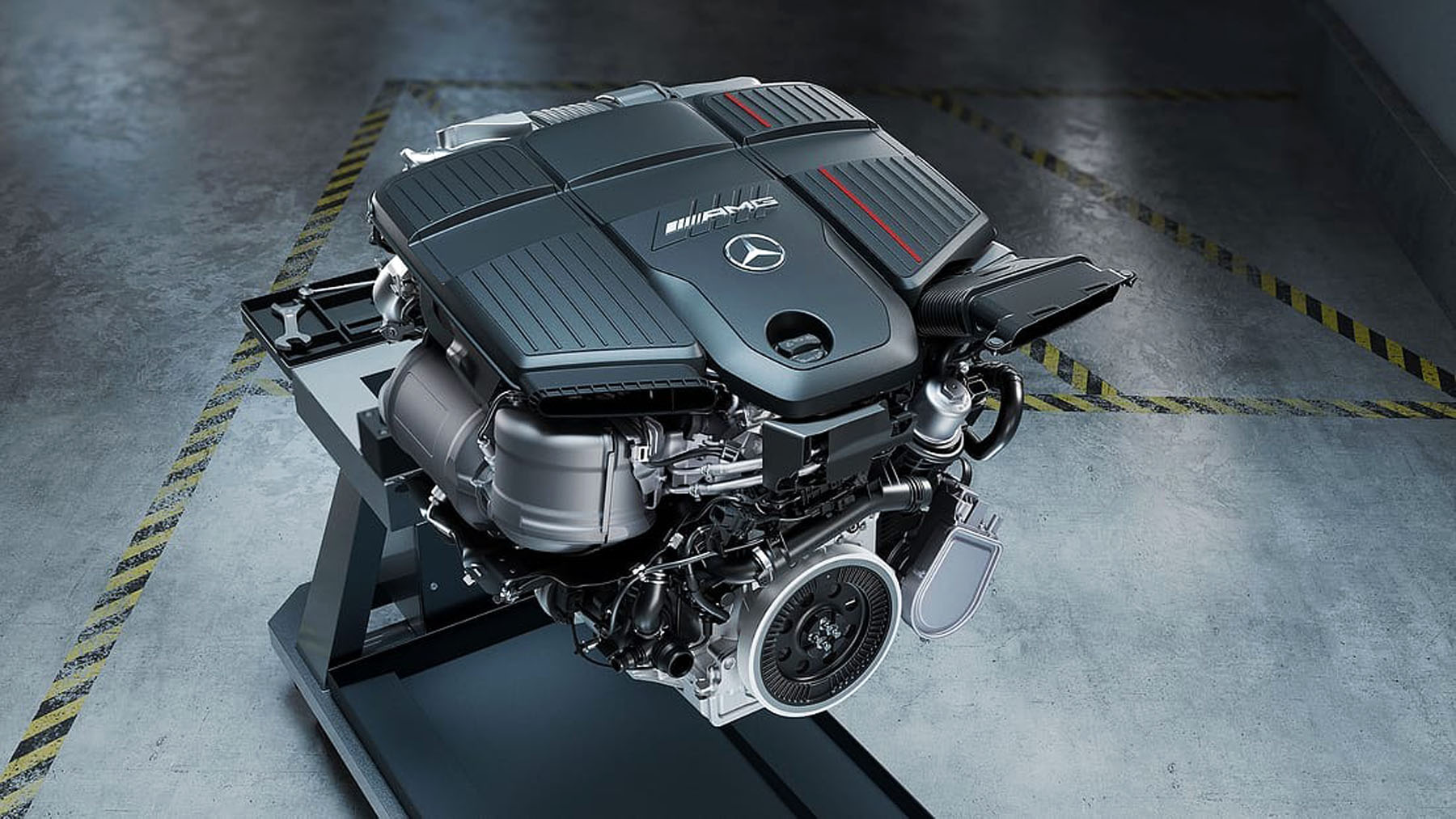 Η μετάδοση γίνεται μέσω του κιβωτίου AMG Speedshift TCT 9G και του πλήρως μεταβλητού συστήματος τετρακίνησης 4Matic+, το οποίο σε κανονικές συνθήκες λειτουργεί κυρίως ως πισωκίνητο.