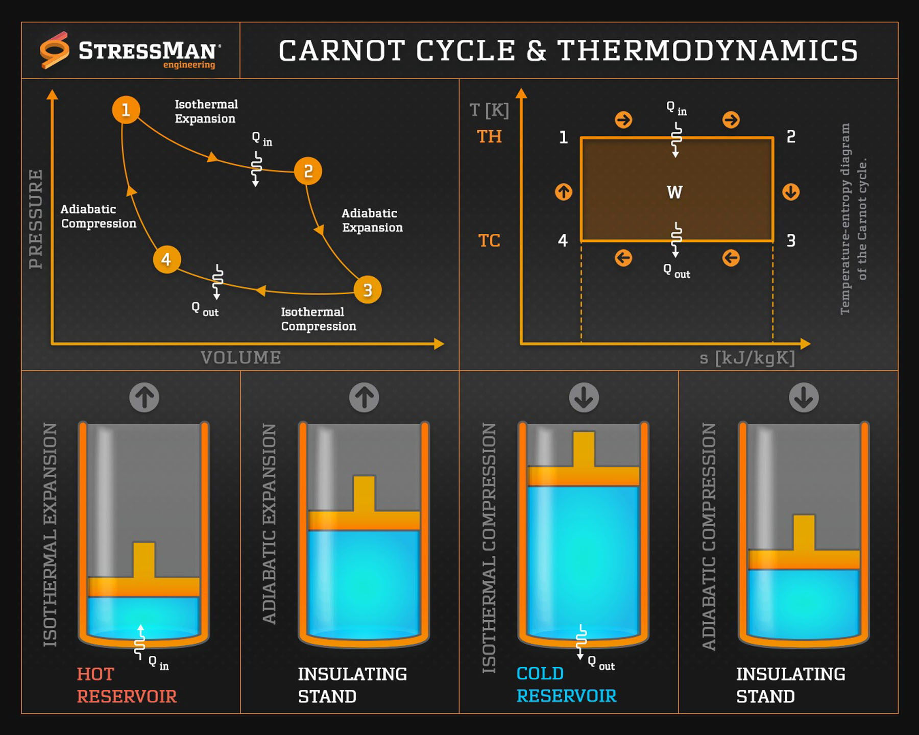Η μέγιστη απόδοση ενός θερμικού συστήματος δίνεται από τη σχέση: η = 1 – (Tₗ / Tₕ), όπου: