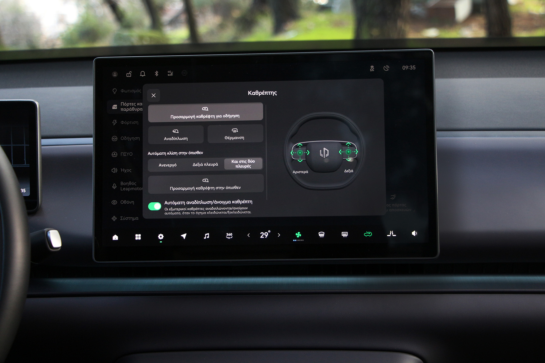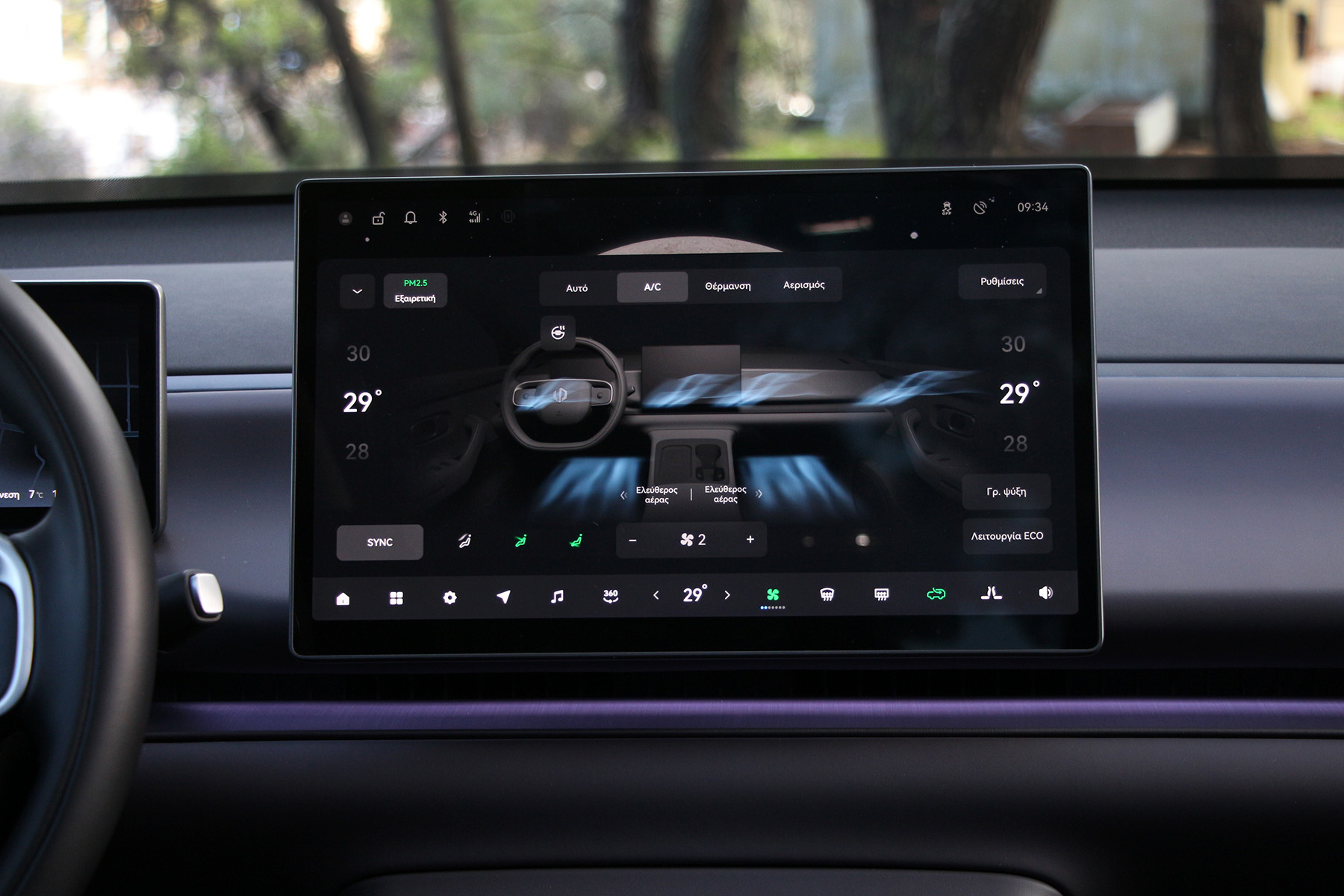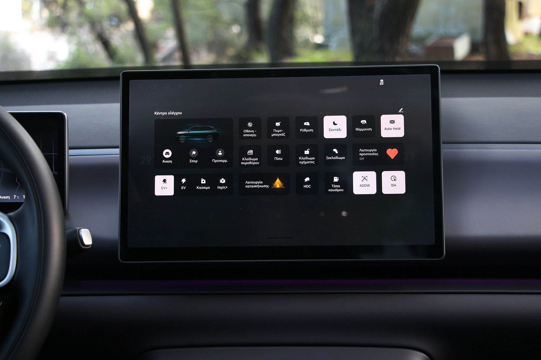 Από φυσικούς διακόπτες μην περιμένετε πολλά. Ένας για τα αλάρμ ψηλά στην πλαφονιέρα και μερικοί στο τιμόνι για τα βασικά του ήχου και της πληροφόρησης.