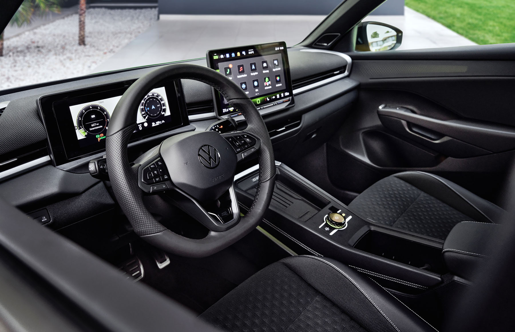 Το εσωτερικό αποτελεί ίσως το μεγαλύτερο άλμα. Η ποιότητα υλικών έχει αναβαθμιστεί σημαντικά, με μαλακές επιφάνειες στο ταμπλό και στις πόρτες, διακοσμητικά στοιχεία με φωτισμό Ambiente και πιο προσεγμένη συναρμογή.