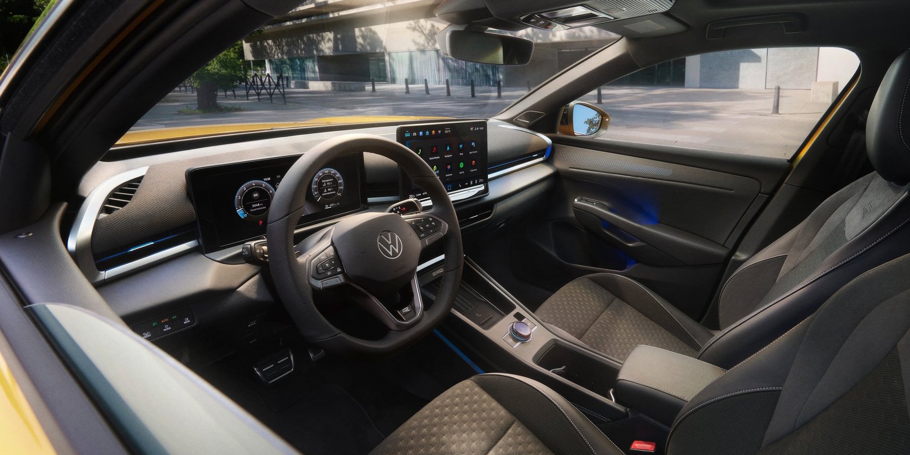 Το εσωτερικό αποτελεί ίσως το μεγαλύτερο άλμα. Η ποιότητα υλικών έχει αναβαθμιστεί σημαντικά, με μαλακές επιφάνειες στο ταμπλό και στις πόρτες, διακοσμητικά στοιχεία με φωτισμό Ambiente και πιο προσεγμένη συναρμογή.
