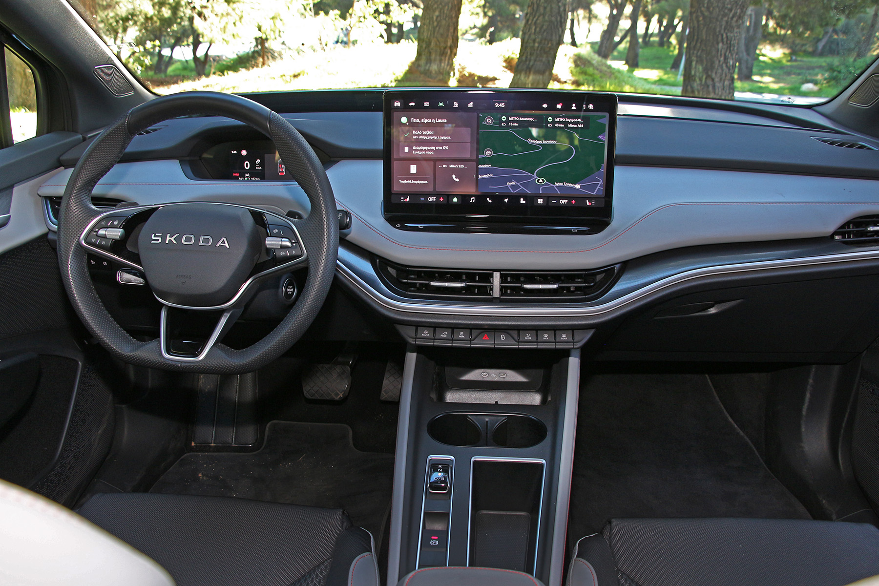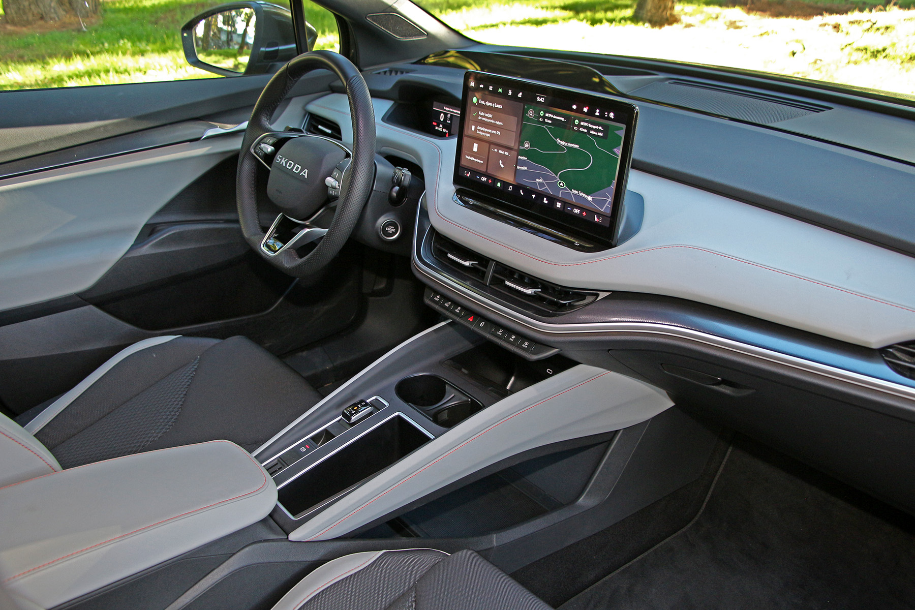 Στοιχεία ήδη γνώριμα, θα σκεφτεί κανείς και θα έχει δίκιο. Εντός, οι αισθητικές παρεμβάσεις δεν είναι τόσο εκτεταμένες και δικαίως, αφού το ηλεκτρικό D-SUV της Skoda παραμένει πιο όμορφο και λειτουργικό από το μέσο όρο εκεί έξω.