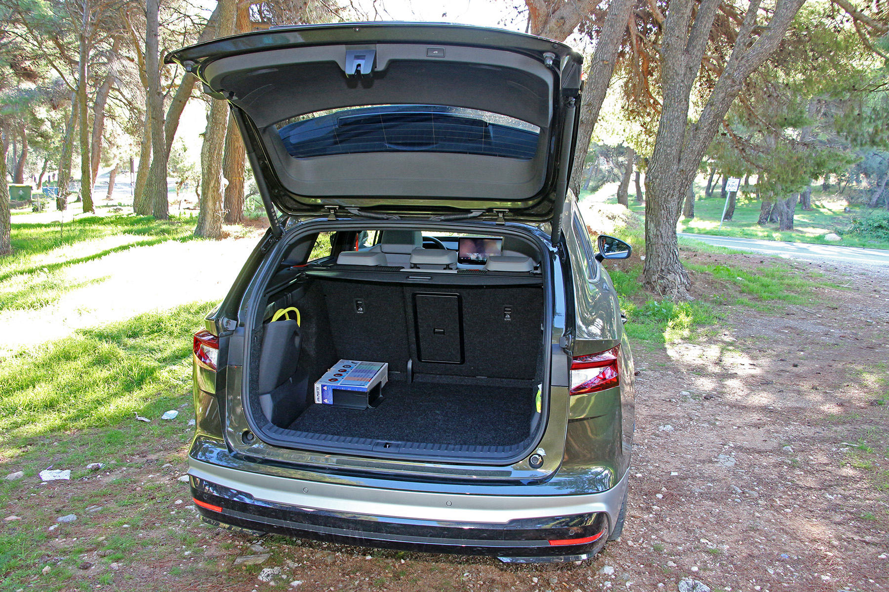 Αναφορικά με τις θέσεις για μικροαντικείμενα, είναι μεν άφθονες αλλά όχι όλες ιδιαίτερα πρακτικές. Στον αντίποδα, η Skoda φροντίζει να διανθίσει το εσωτερικό με διάφορες ενδιαφέρουσες λεπτομέρειες, όπως οι δύο ψυχόμενες, επαγωγικές βάσεις φόρτισης κινητών τηλεφώνων, οι κρυμμένες ομπρέλες στις πόρτες και τα σκιάδια των πίσω παραθύρων.