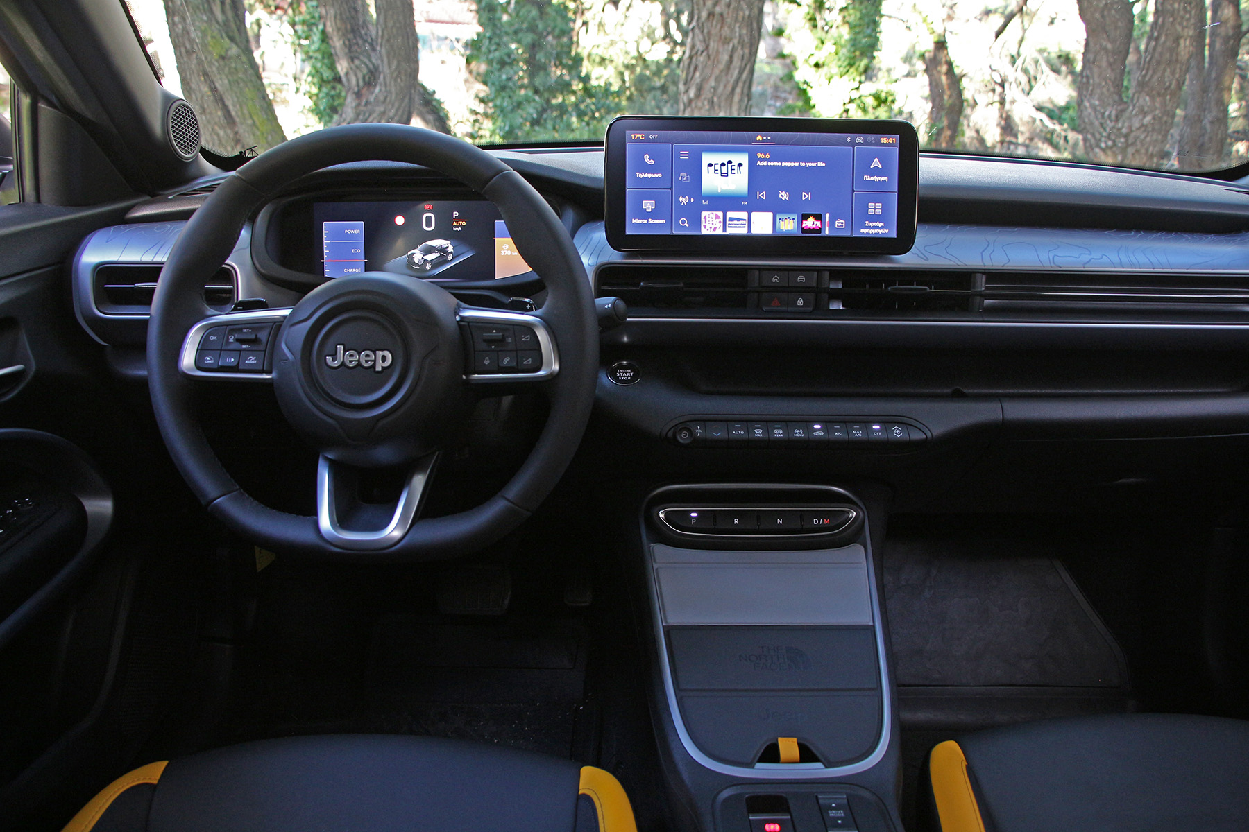 Οι δύο οθόνες μεγέθους 10,25 ιντσών η καθεμία εξακολουθούν να είναι το κυρίαρχο στοιχείο στην καμπίνα του μικρού Jeep, με τη διαφορά ότι δεν είναι τα μοναδικά που τραβούν το βλέμμα.