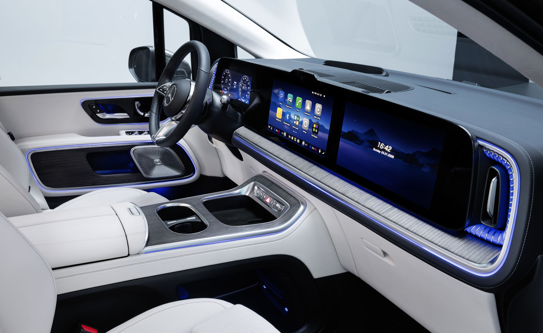 Το σύστημα πολυμέσων διαθέτει επίσης ψηφιακό βοηθό MBUX που ενσωματώνει τεχνολογίες τεχνητής νοημοσύνης όπως ChatGPT και Google Gemini, ενώ υποστηρίζει και βιντεοκλήσεις ή επαγγελματικές συναντήσεις μέσω της ενσωματωμένης κάμερας.