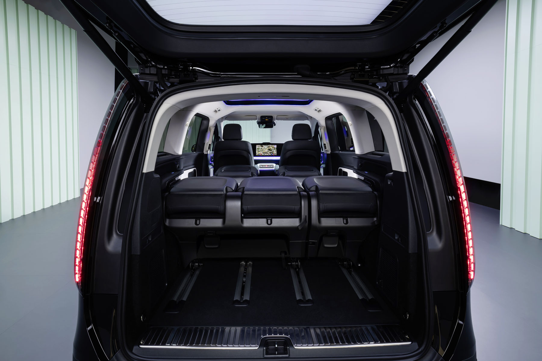 Η Mercedes εισάγει και ένα σύστημα ηλεκτρικά ρυθμιζόμενων ραγών στο δάπεδο, μέσω των οποίων τα καθίσματα μπορούν να μετακινηθούν ακόμη και μέσω εφαρμογής στο κινητό, δημιουργώντας διαφορετικές διατάξεις στο εσωτερικό.