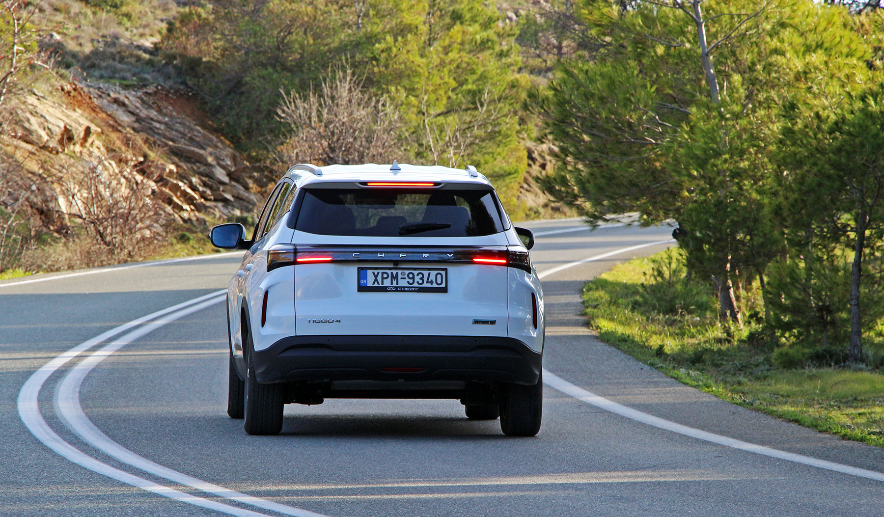 Με απλά λόγια θα λέγαμε πως στις χαμηλές ταχύτητες το Tiggo 4 κινείται μόνο με ηλεκτρική ενέργεια. Σε μεσαίες ταχύτητες με ελαφρύ πάτημα του γκαζιού ο θερμικός κινητήρας λειτουργεί ως γεννήτρια για τον ηλεκτροκινητήρα και τη μπαταρία (και πάλι χαμηλή κατανάλωση καυσίμου).
