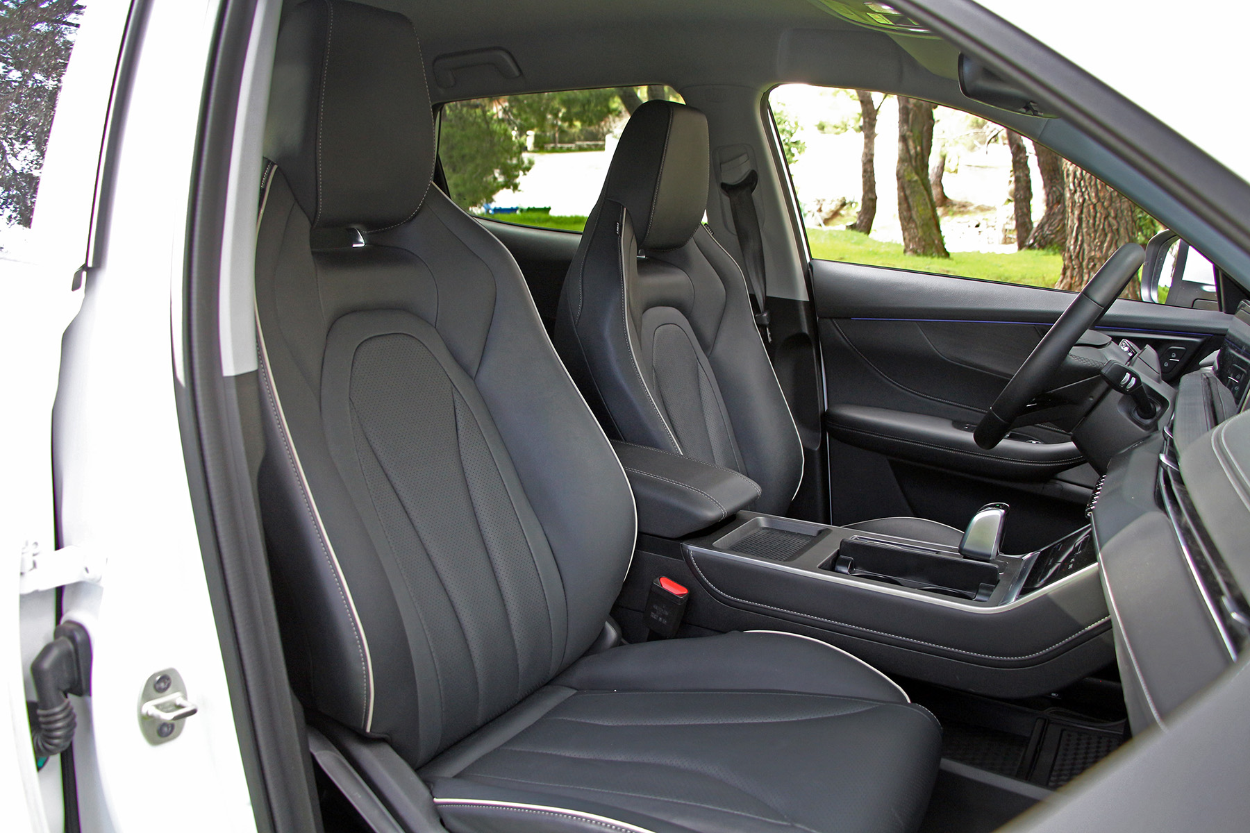To χώρισμα μεταξύ οδηγού και συνοδηγού αφενός επιτρέπει μπόλικο χώρο για αντικείμενα στο κάτω μέρος, αφετέρου επάνω φιλοξενεί τον επιλογέα, την οθόνη του κλιματισμού, μία θήκη με κάλυμμα και άλλες δύο για το τηλέφωνο και το κλειδί.